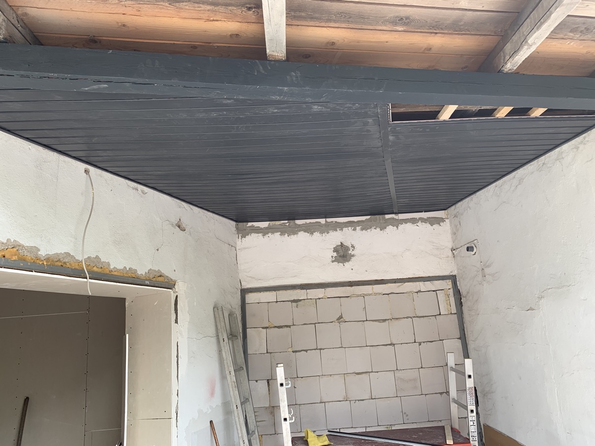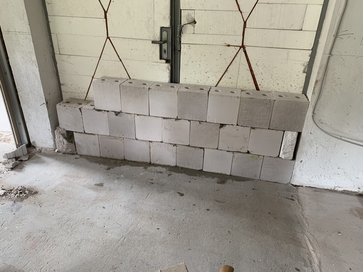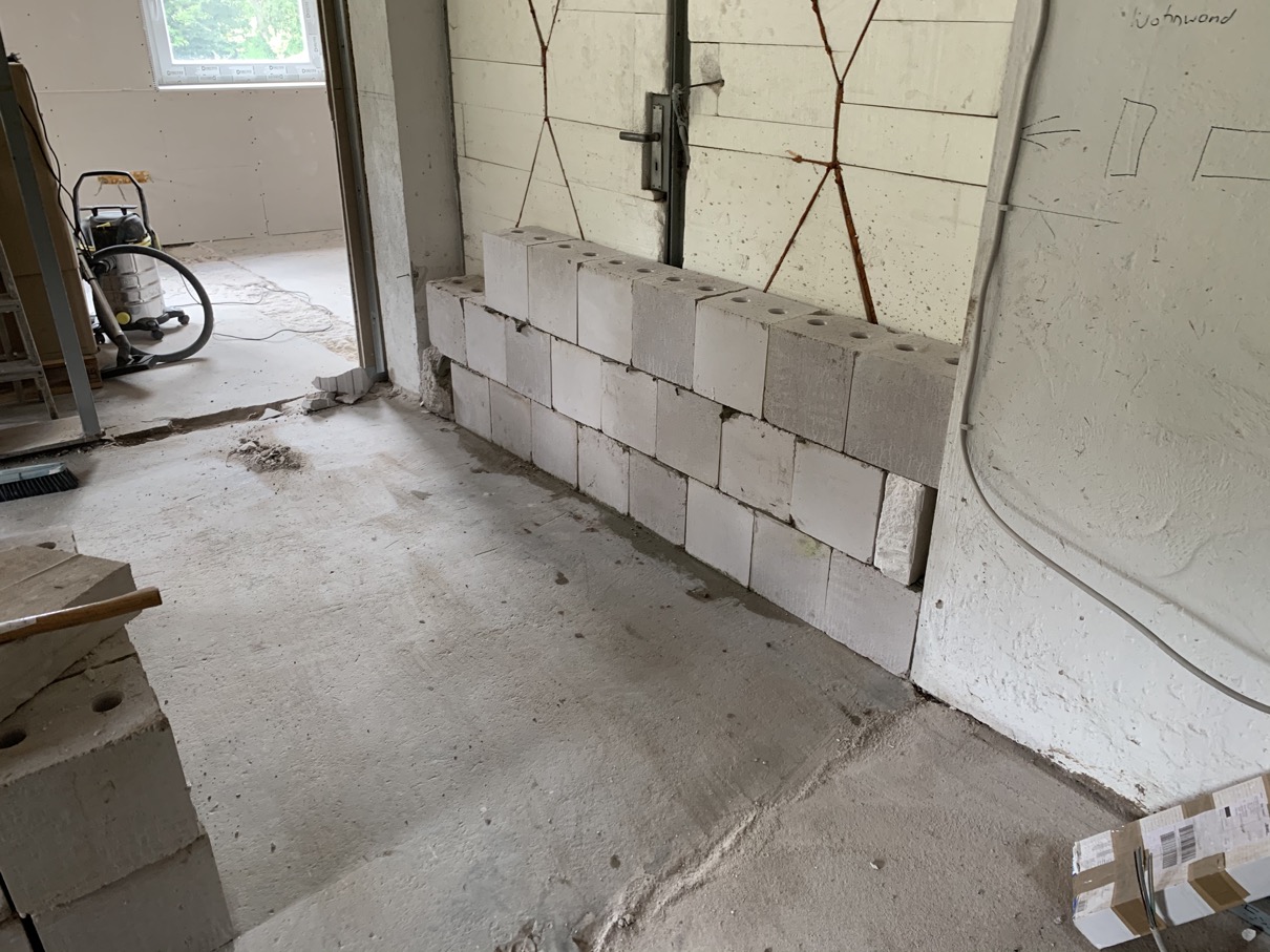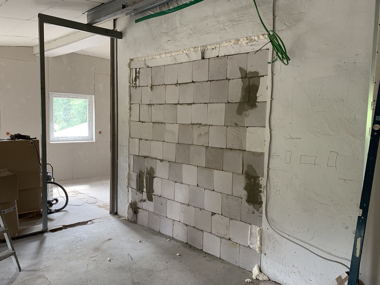 Weiter geht's in der Loft -> es muss ja noch das große Tor ausgebaut und die Maueröffnung verschlossen werden (sonst sähe das Wohnzimmer schon a Busserl doof aus 😂) --> also ran an den Feind :