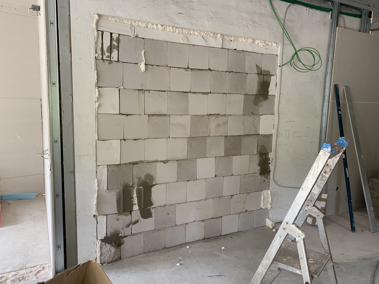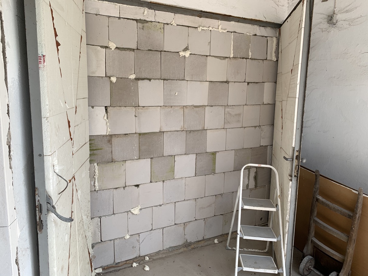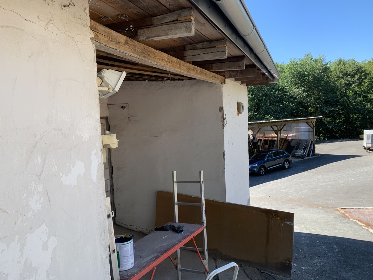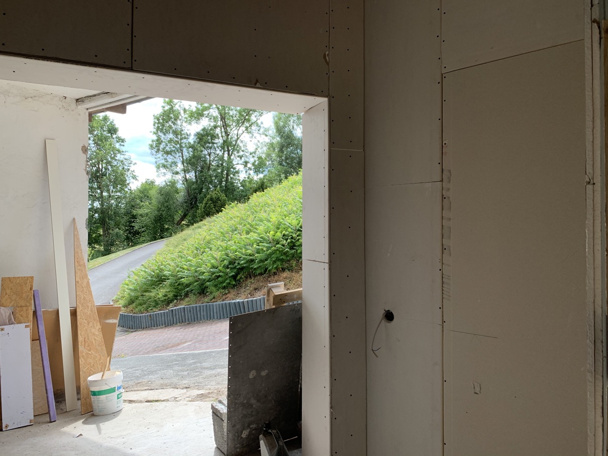 Weiter geht's in der Loft -> es muss ja noch das große Tor ausgebaut und die Maueröffnung verschlossen werden (sonst sähe das Wohnzimmer schon a Busserl doof aus 😂) --> also ran an den Feind :