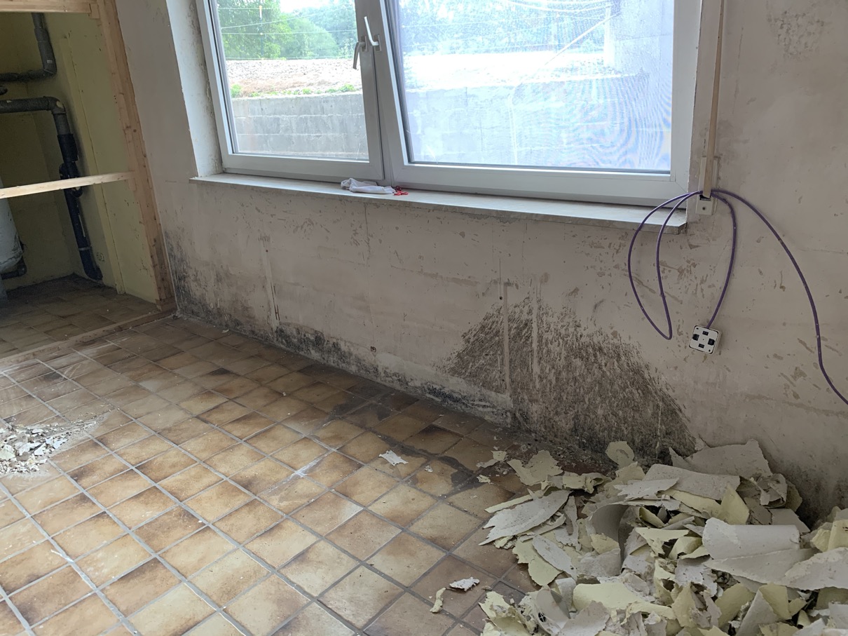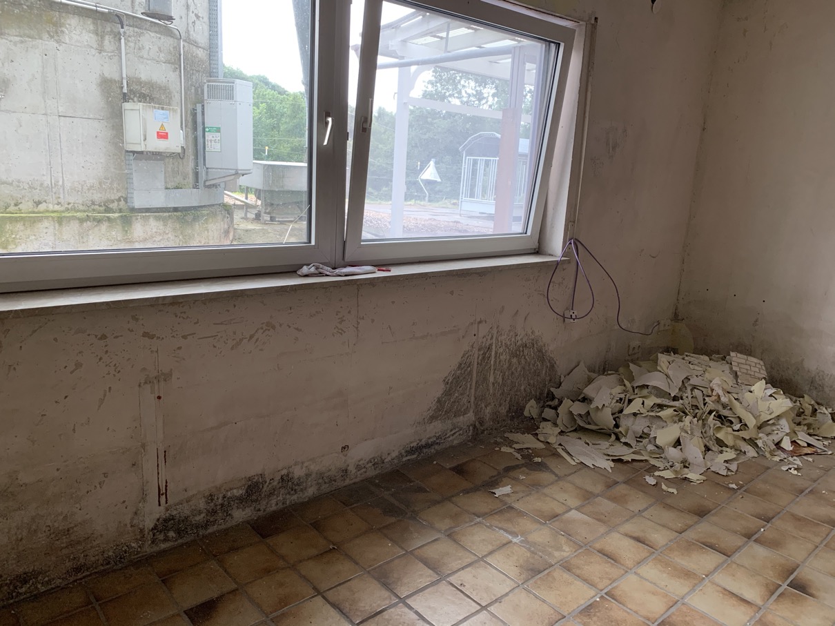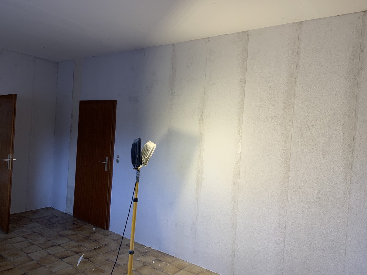 Temperaturen von mehr als 35 Grad C sorgen dafür, dass Arbeit im Kühlen gesucht wird .... gefunden: im alten Bürotrakt unter der Reit-/Bewegungshalle, in dem ja bereits meine Arbeitszimmer modernisiert sind, sind ja noch mehr Räume ... auch hier wieder voller Schwarzschimmel, der noch entfernt werden muss; Abrissarbeiten standen auch noch an ... also ran: