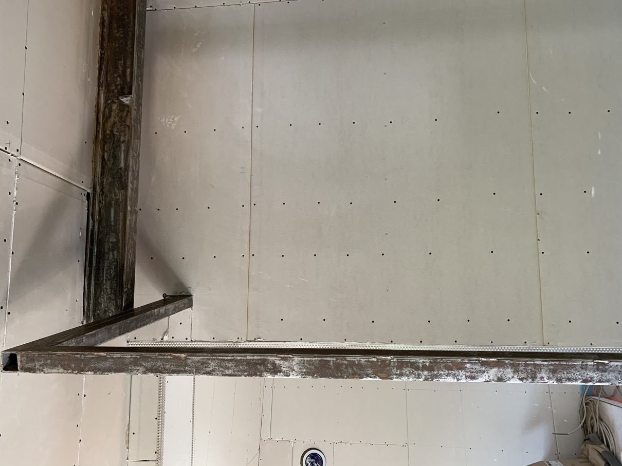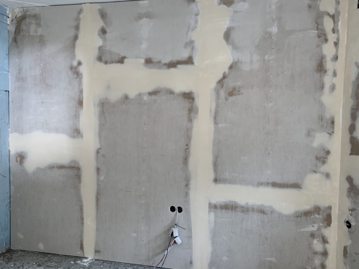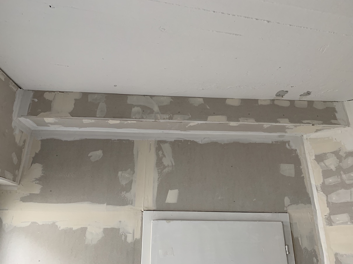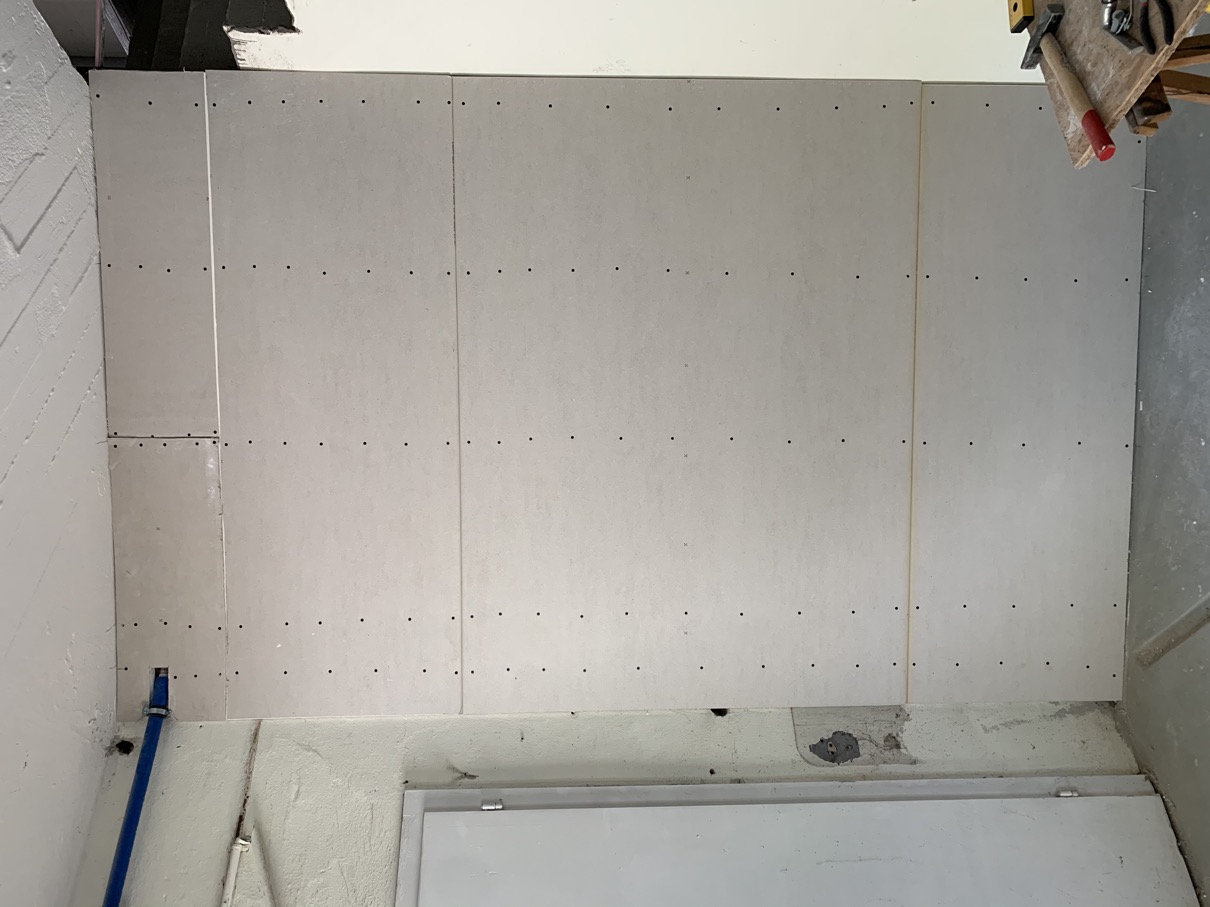 Schrauben vergipst, Kurt-Band in die Innenecken eingelegt und dann die Quer- und danach die Längsfugen vergipst. Damit ist die Qualitätsstufe Q1 erreicht. |