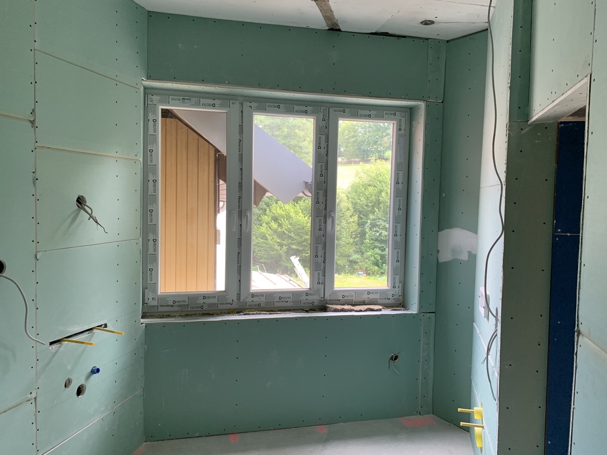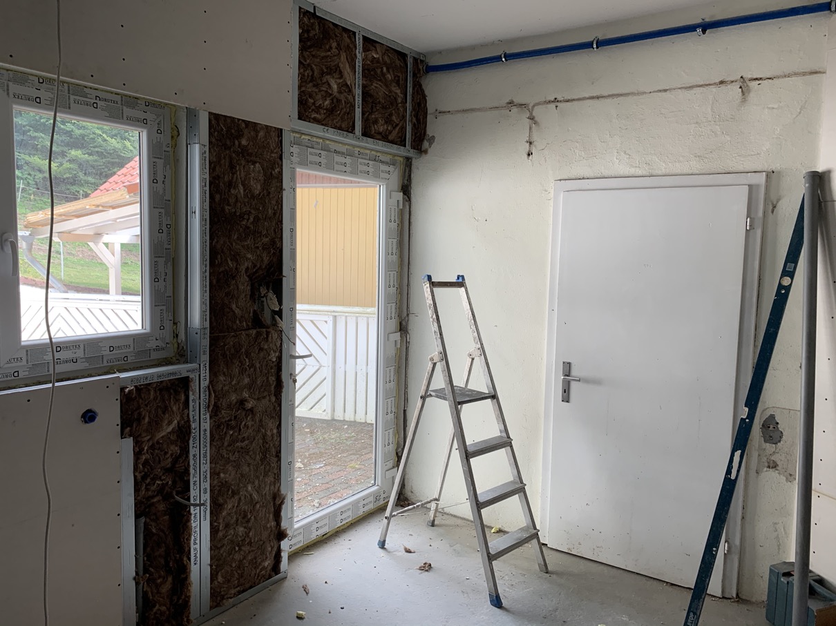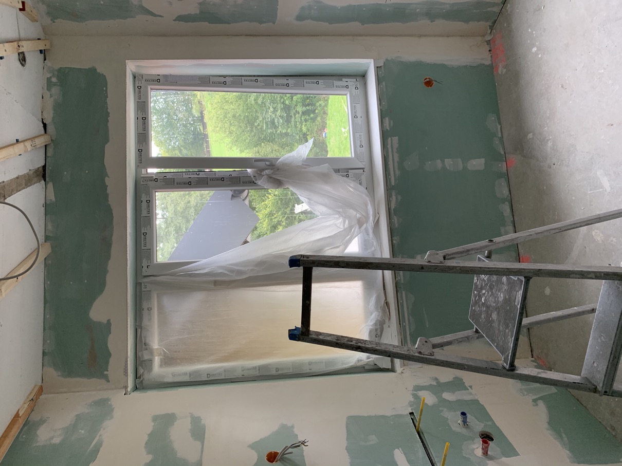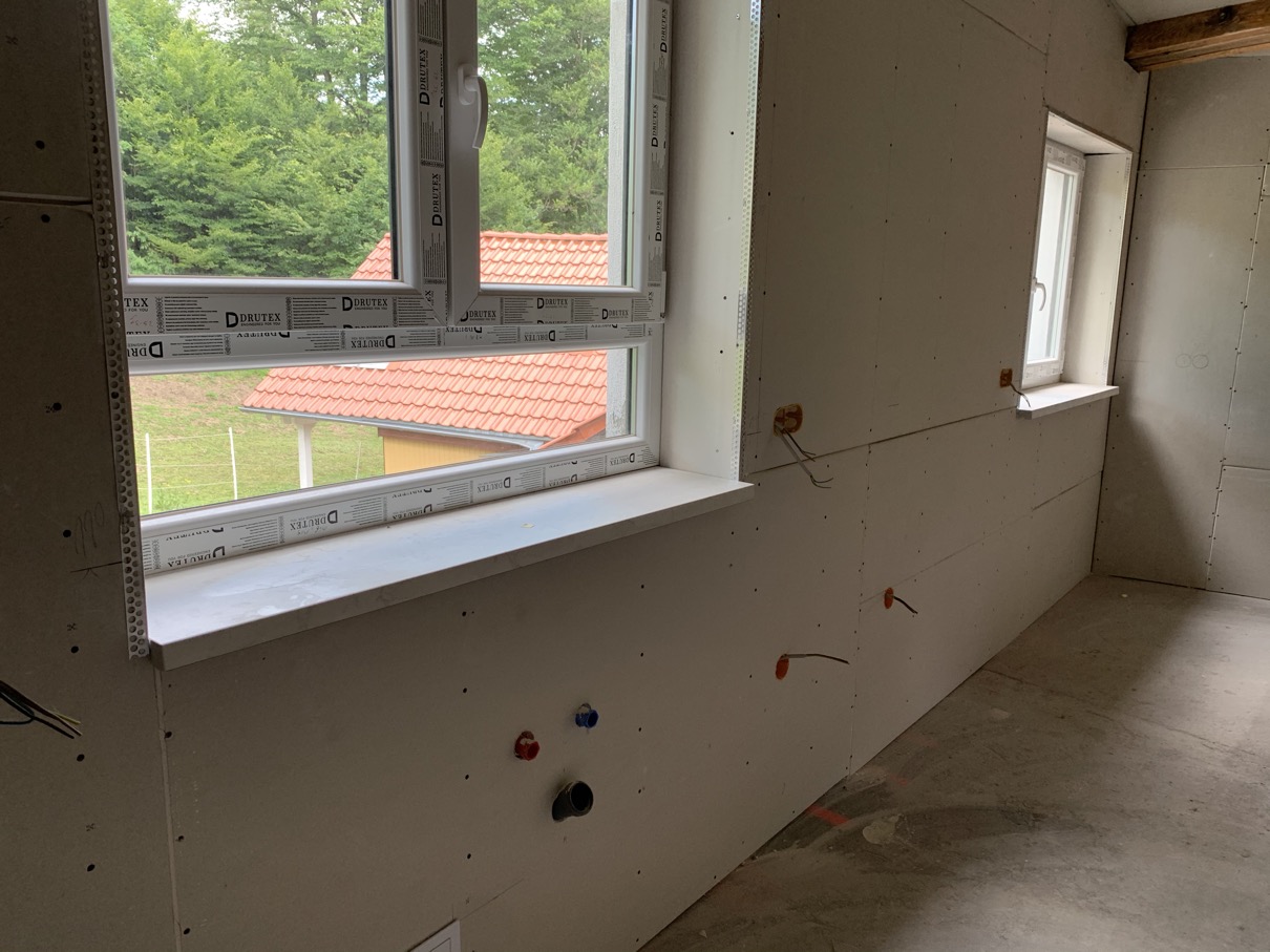 Das Ge-Eckels und die Anpassungen haben einen ganzen Tag gekostet, dafür aber auch diesen Teil der Baustelle geschlossen. Nun kann ich innen aufräumen, da ich mit dieser Maßnahme den Trockenbau (Ausnahme Abgang zum Keller) abgeschlossen habe und als nächstes die Fensterbänke ausmessen/bestellen und dann einbauen kann.