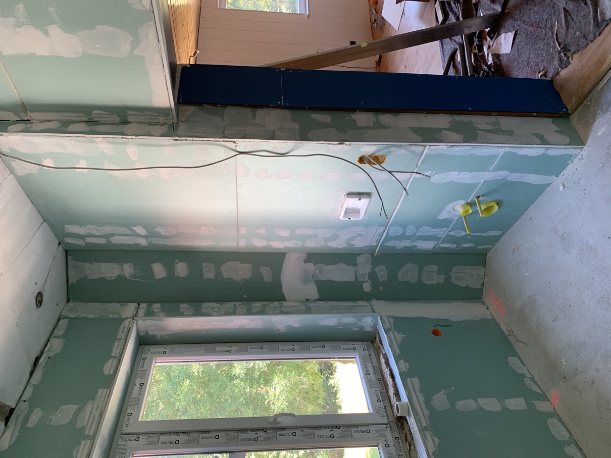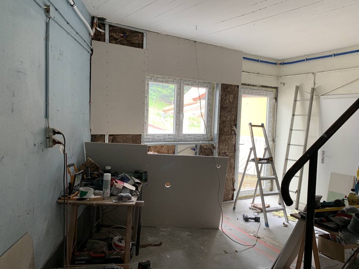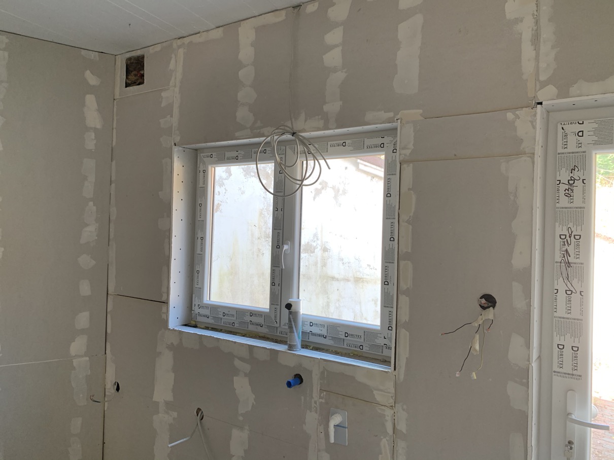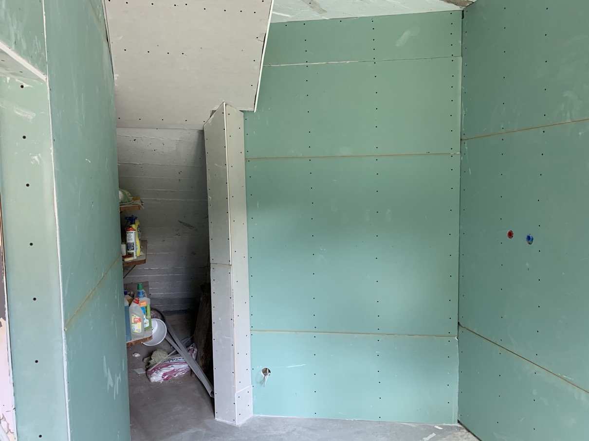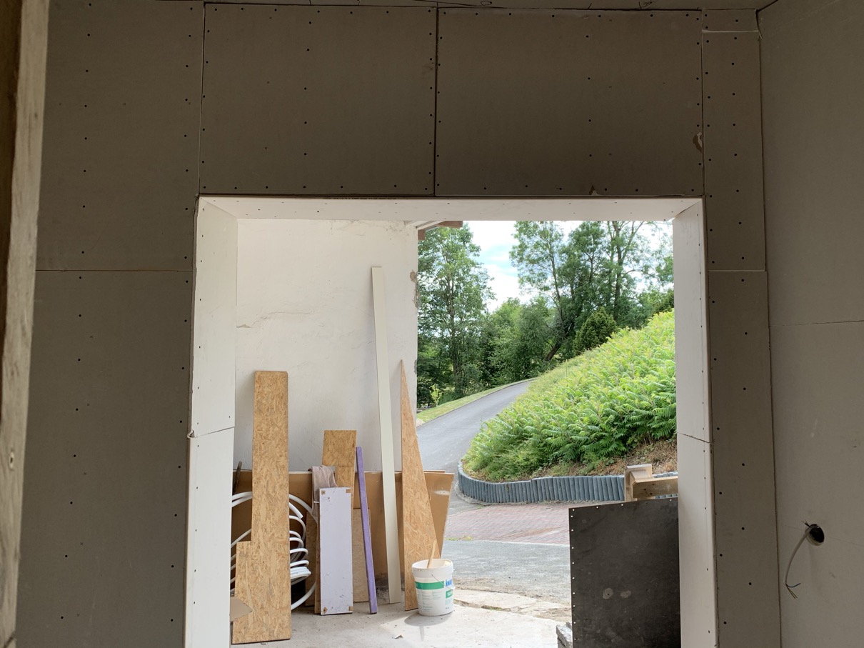 Das Ge-Eckels und die Anpassungen haben einen ganzen Tag gekostet, dafür aber auch diesen Teil der Baustelle geschlossen. Nun kann ich innen aufräumen, da ich mit dieser Maßnahme den Trockenbau (Ausnahme Abgang zum Keller) abgeschlossen habe und als nächstes die Fensterbänke ausmessen/bestellen und dann einbauen kann.