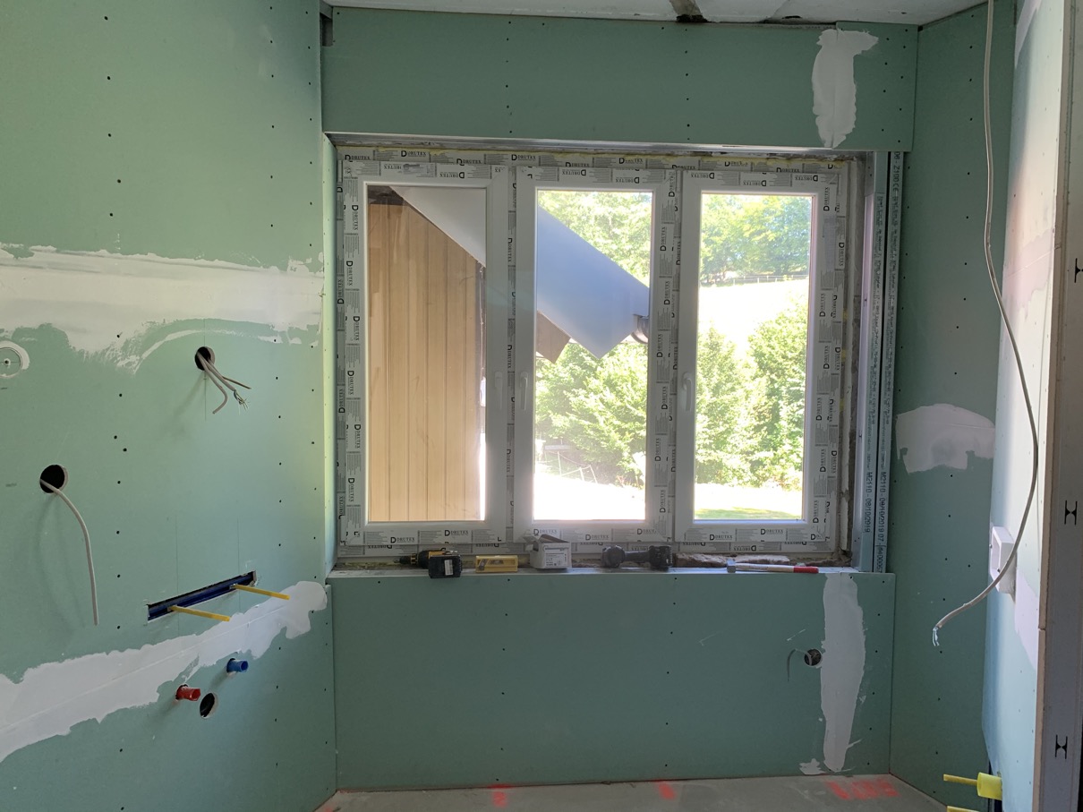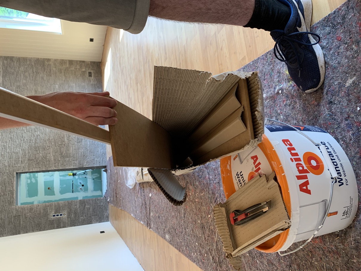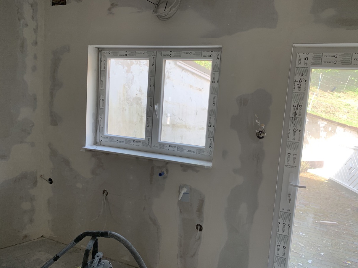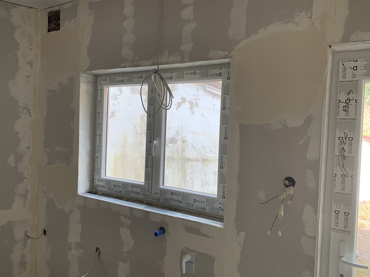 Das Ge-Eckels und die Anpassungen haben einen ganzen Tag gekostet, dafür aber auch diesen Teil der Baustelle geschlossen. Nun kann ich innen aufräumen, da ich mit dieser Maßnahme den Trockenbau (Ausnahme Abgang zum Keller) abgeschlossen habe und als nächstes die Fensterbänke ausmessen/bestellen und dann einbauen kann.