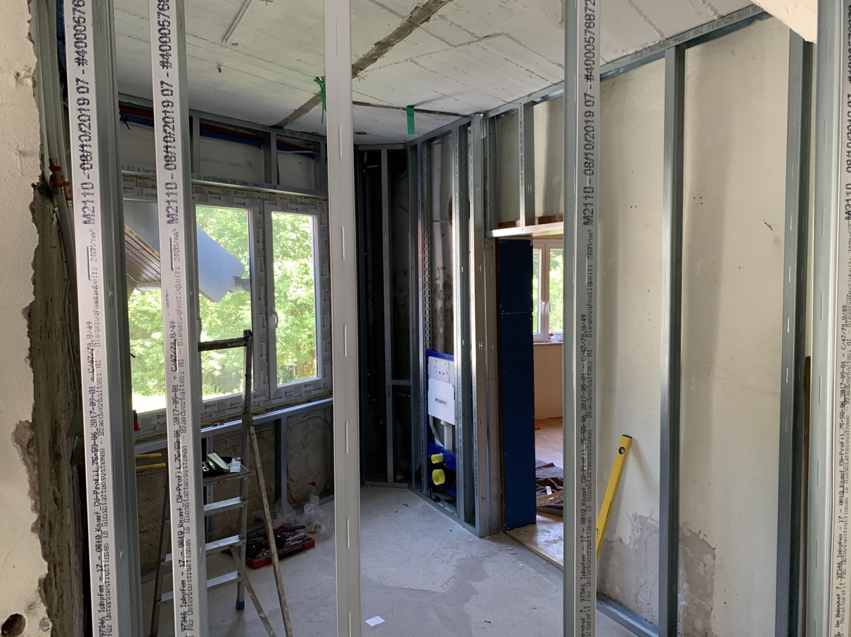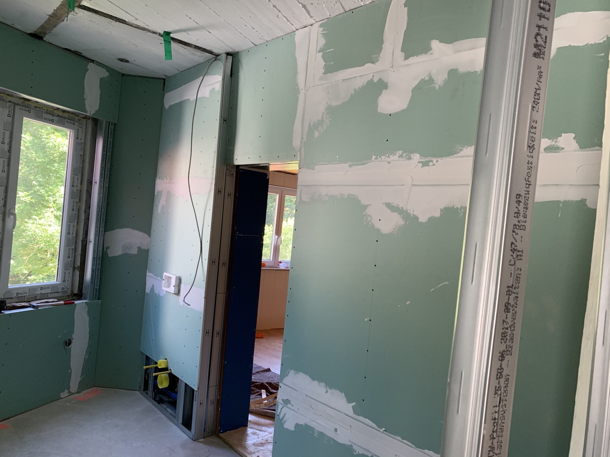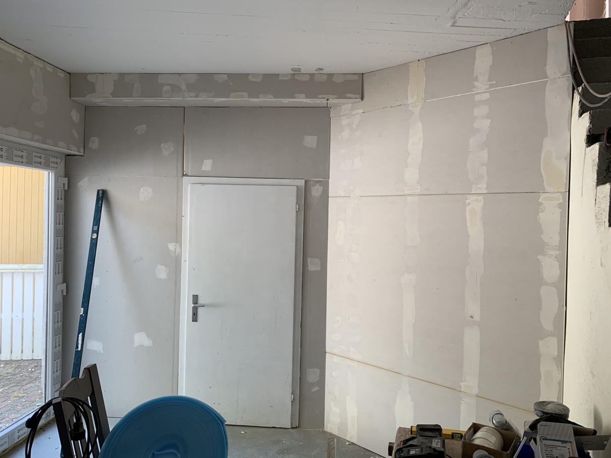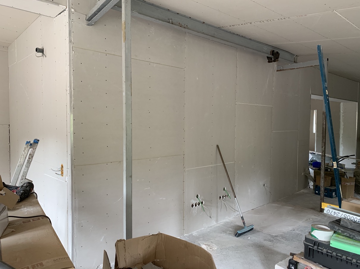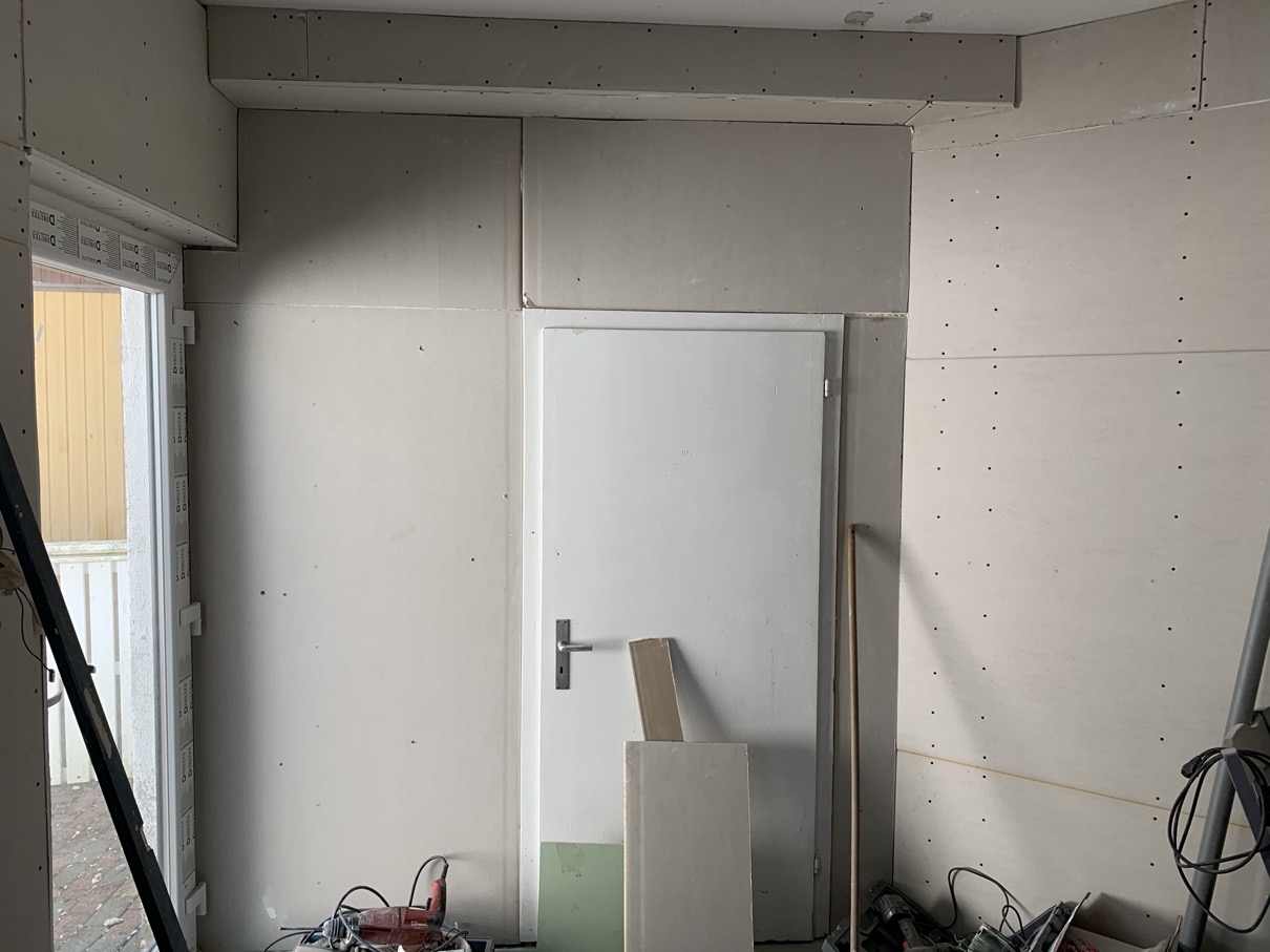 In der Folge kann der Trockenbau im Ess-/Wohnzimmer endlich beendet werden: