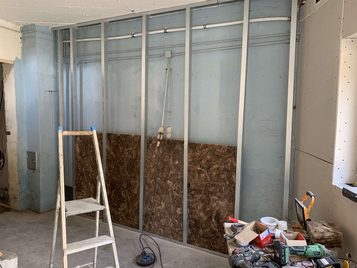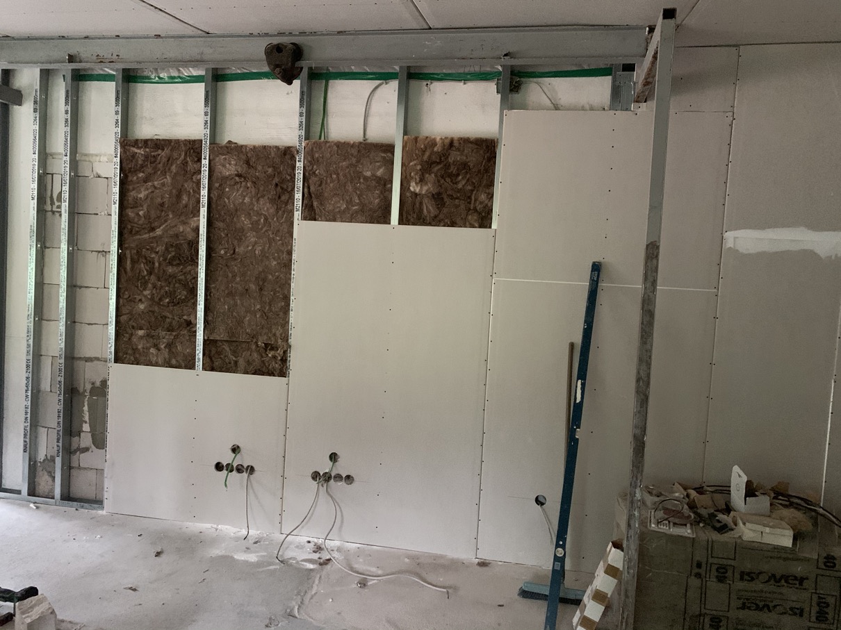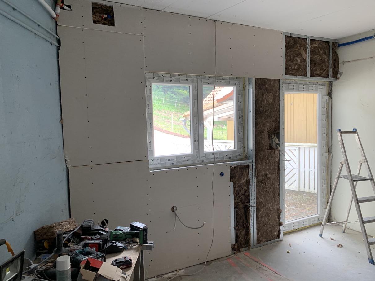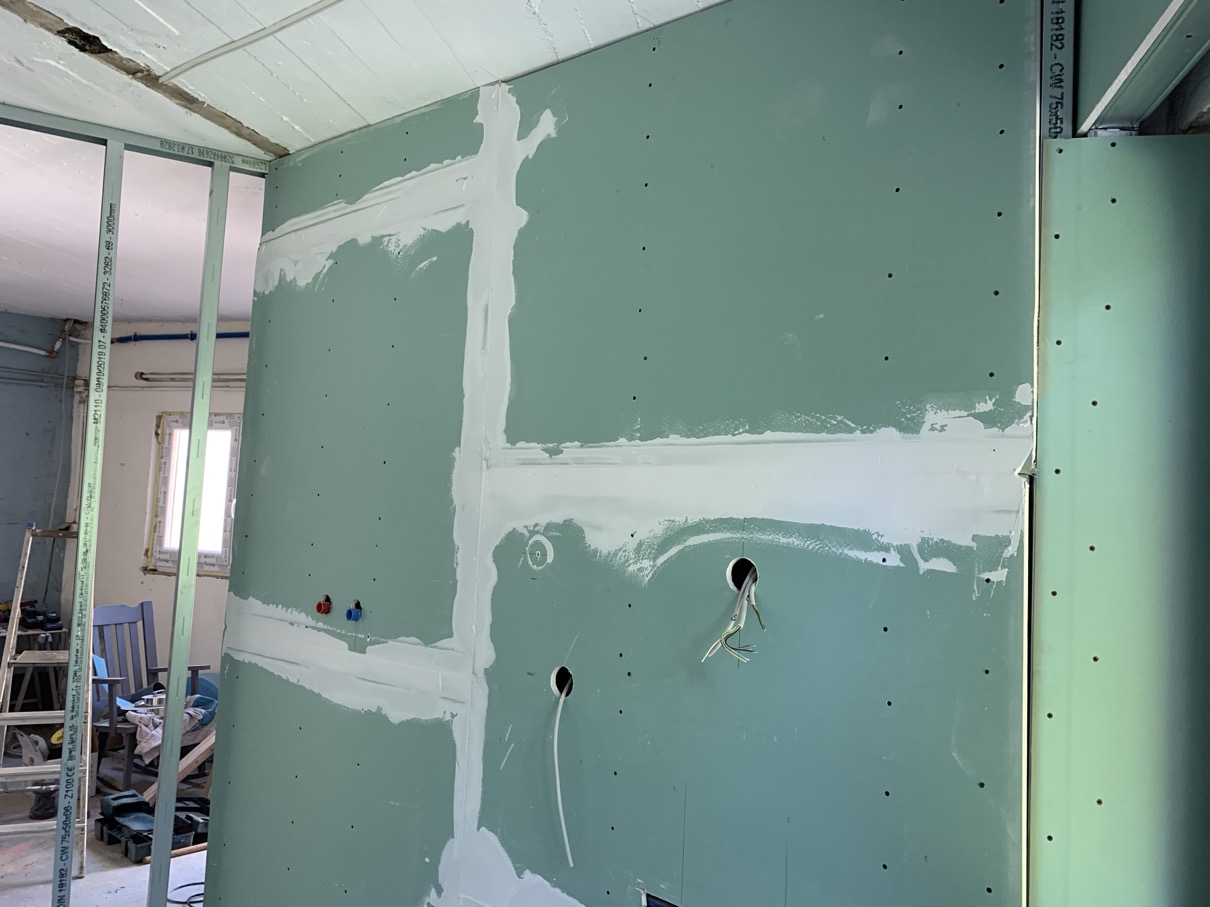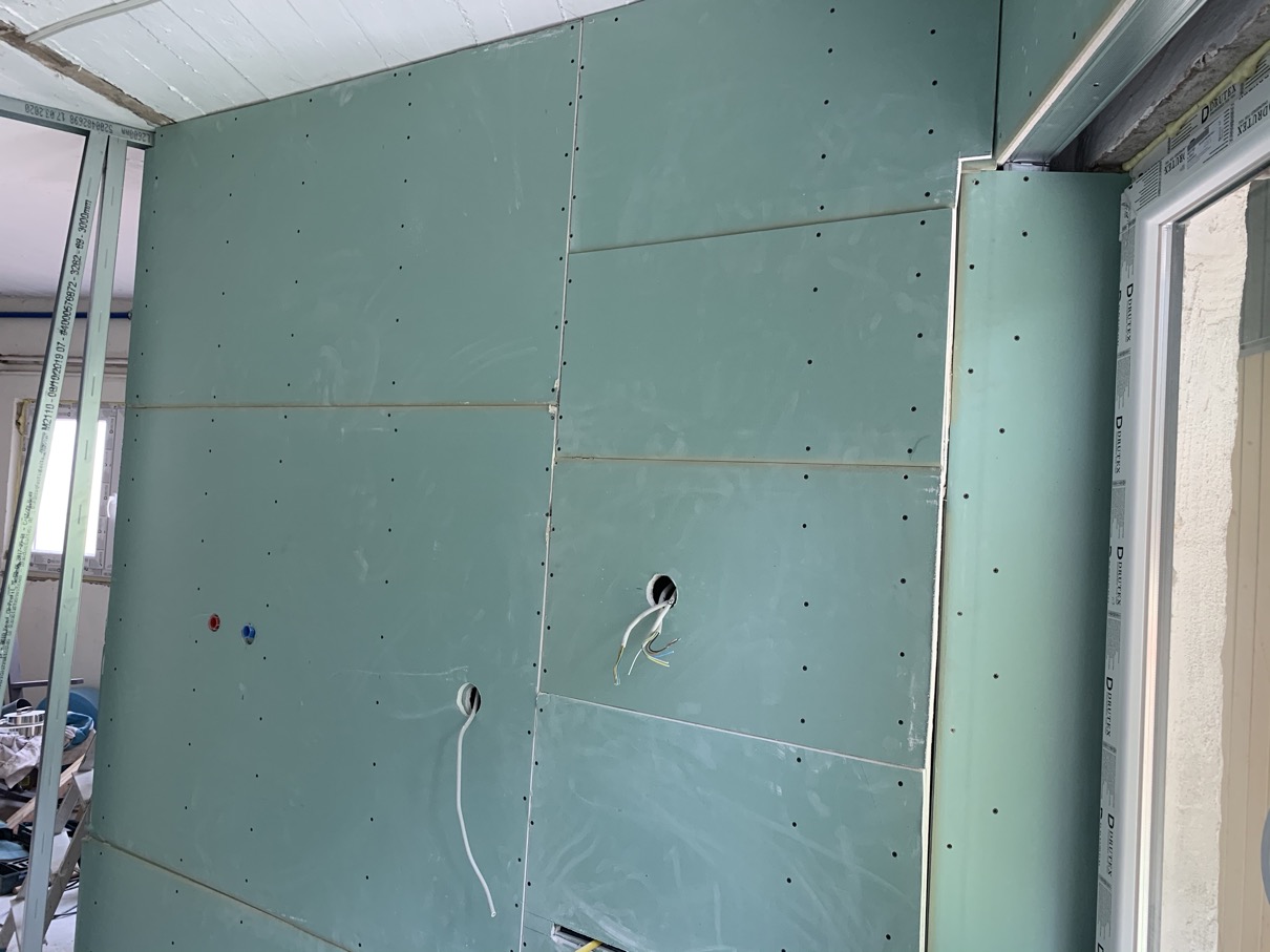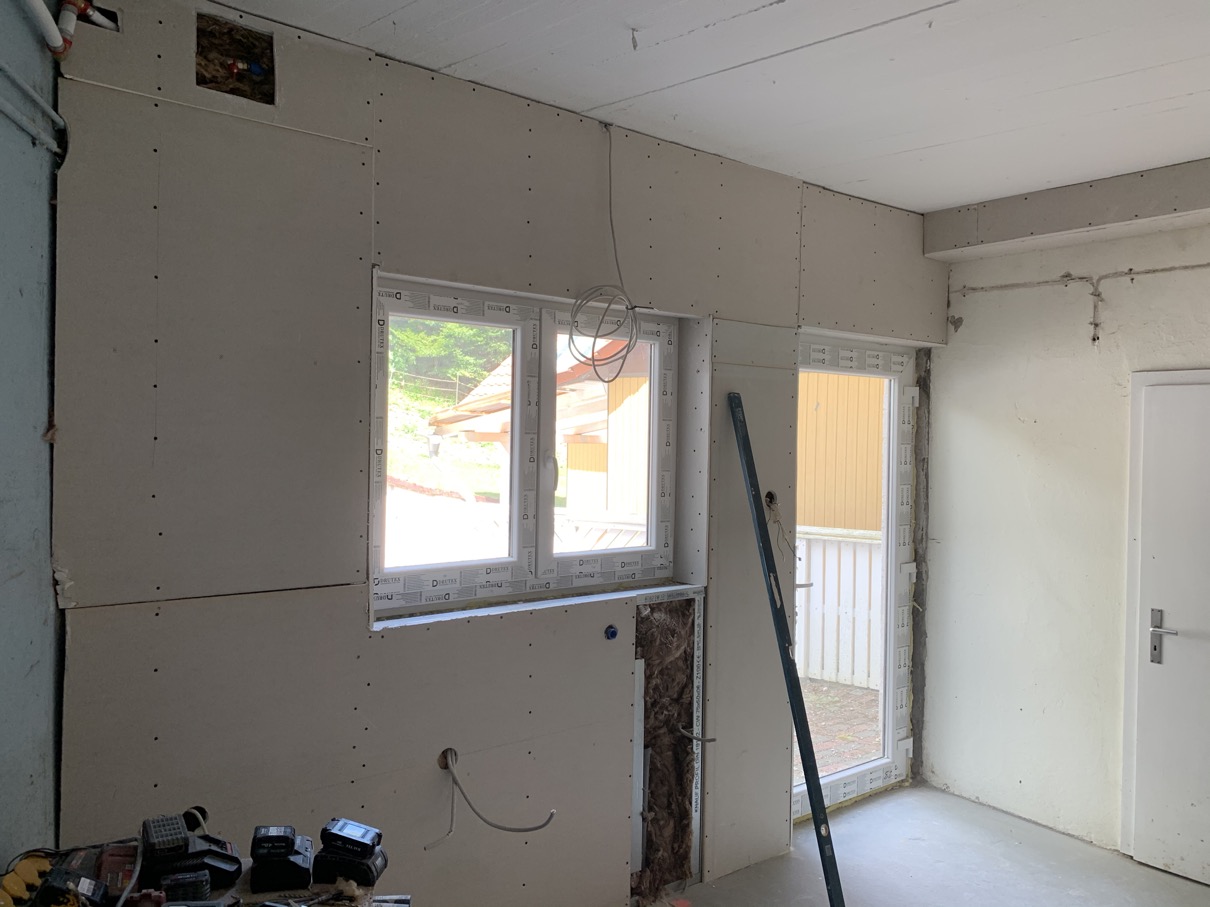 In der Folge kann der Trockenbau im Ess-/Wohnzimmer endlich beendet werden: