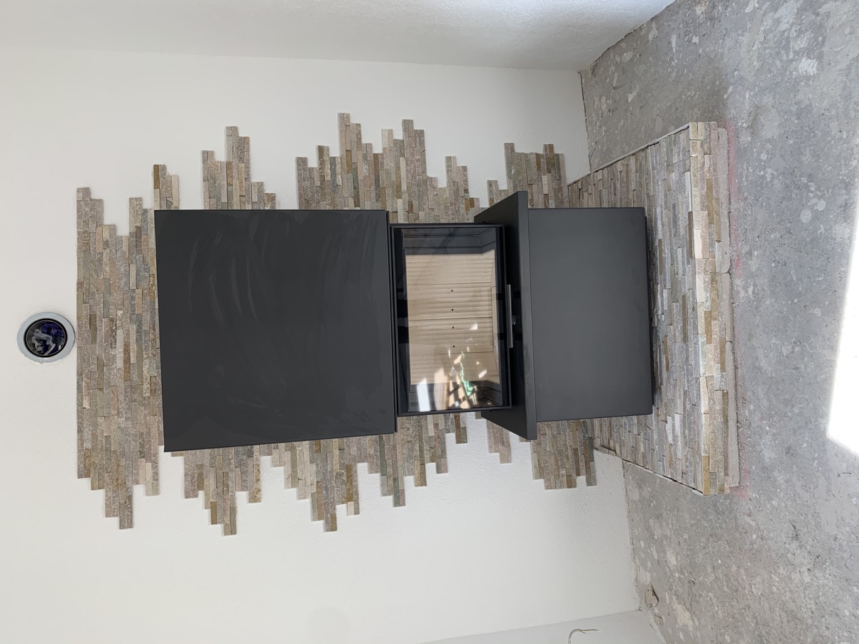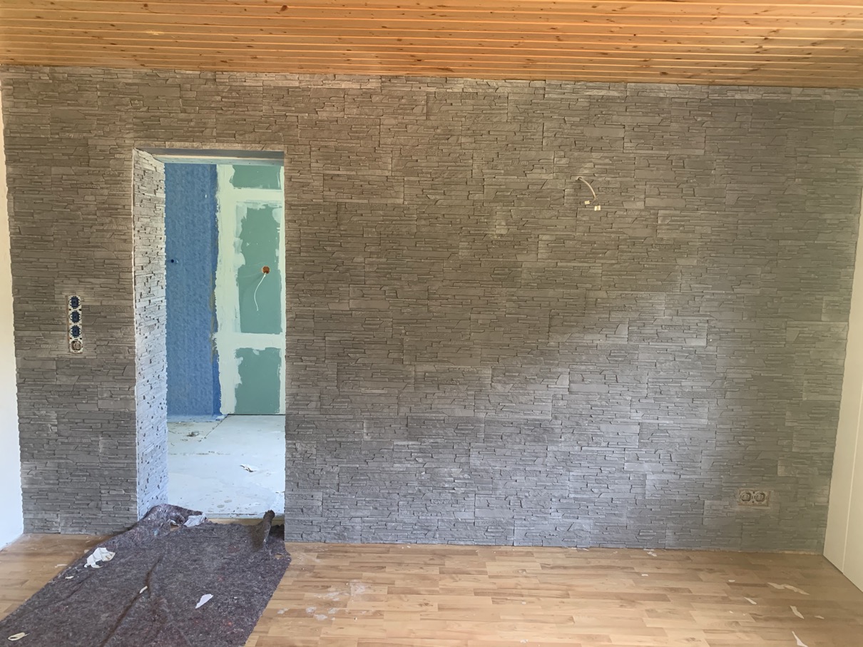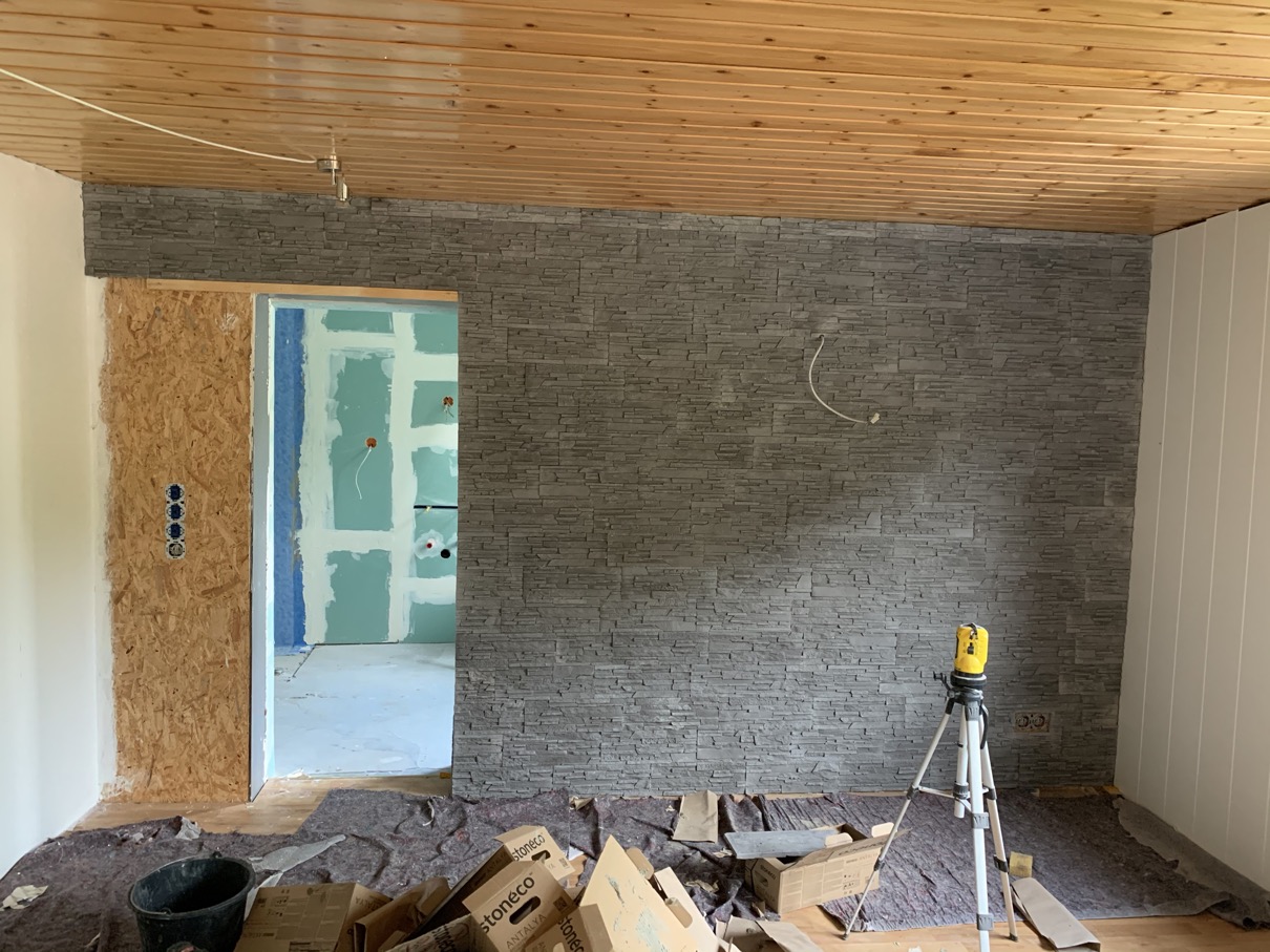 Wir hatten die Idee, die Wand hinter dem Kamin ein wenig zu "stylen" -> guckst Du: