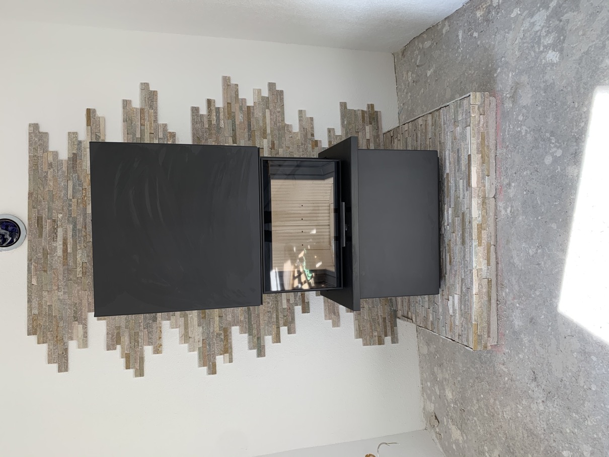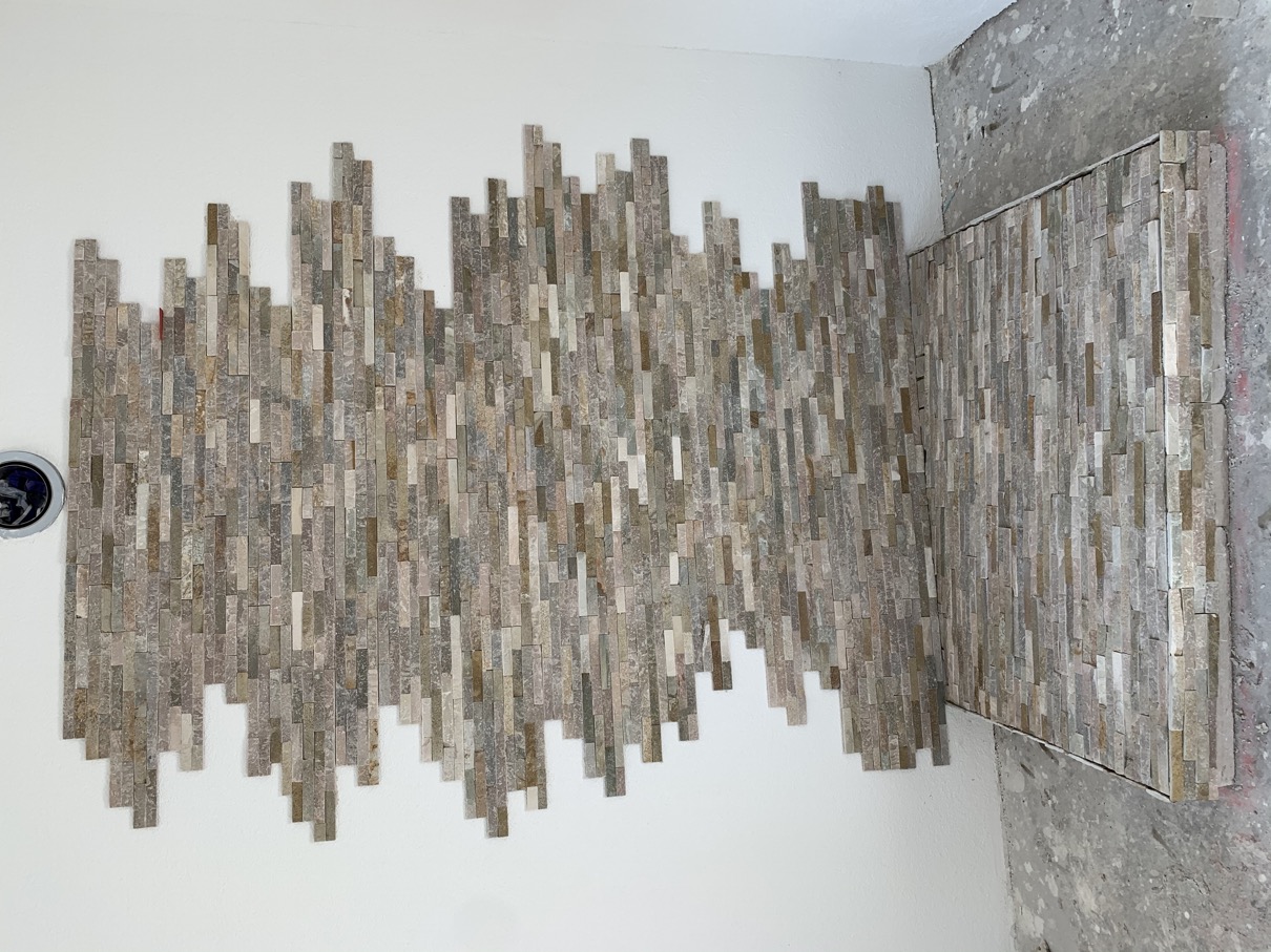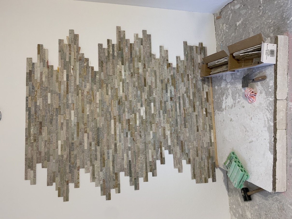 Wir hatten die Idee, die Wand hinter dem Kamin ein wenig zu "stylen" -> guckst Du: