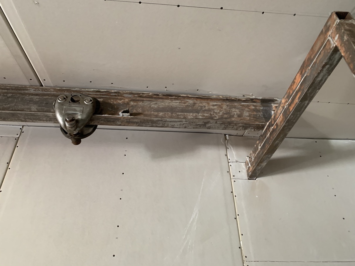 Bis die Fensterbänke angeliefert werden können noch andere Arbeiten vollzogen werden -> das "Industriedenkmal", welches im Haus verbleiben soll - genau, der alte Lastenaufzug mit der Laufkatze - müssen natürlich ein wenig behandelt werden, sprich abgeschliffen und vom Rost befreit und danach ein wenig nachlackiert: gesagt - getan: