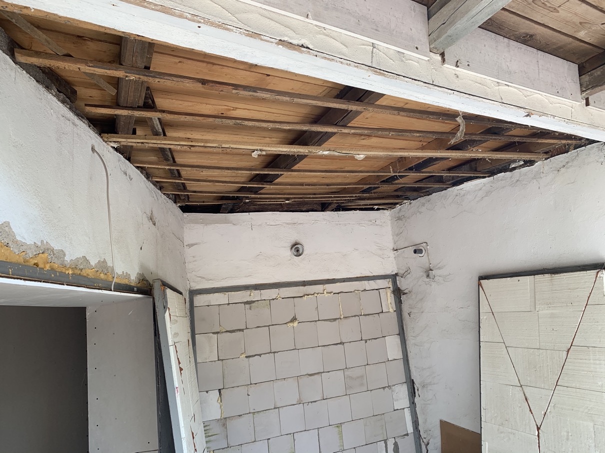 Wenn schon mal viel Dreck gemacht worden ist - kann das noch verstärkt werden, indem das die alte Deckenverkleidung des "Eingangsportals" abgerissen wird: