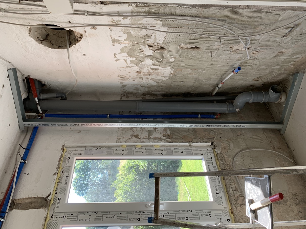 Um den Trockenbau mal abzuschließen (Wunschdenken ....) müssen auch noch Restarbeiten (die jeder so liebt) vollendet werden - also in der Küche die Ecke mit den Rohren .... sprang wieder besonders ins Auge beim Setzen der entsprechenden Fensterbank: