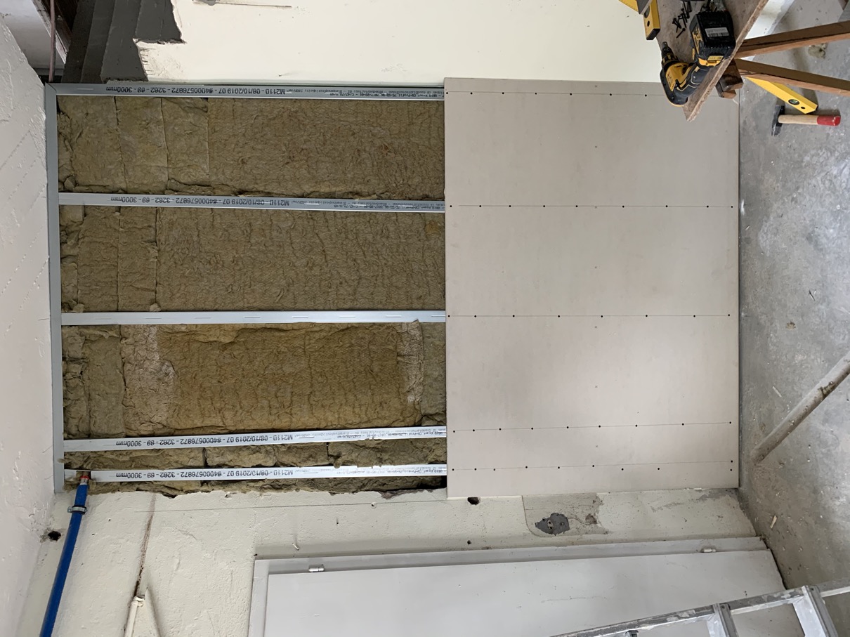 | aber irgendwann muss auch die Abtrennseite doppelt beplankt werden ... | ![]() |