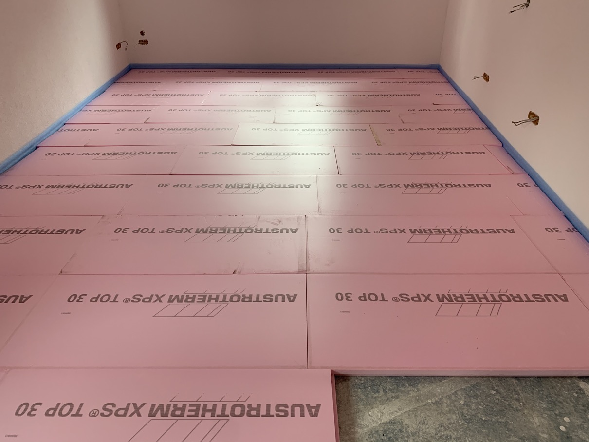 Dann mal zum Isolieren (Wärme und Trittschall) des Bodens (hoffentlich habe ich hier genug Material 😩):