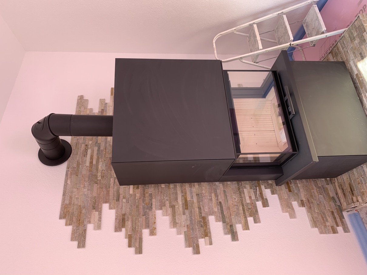 Ohne Schwager Robert (ehemaliger Ringer) hätten wir den Koloss nicht auf das Podest bekommen; aber mit ihm und der richtigen Taktik .... hat das gepasst; dann das "PowerPack" von zusätzlichen 150 kg eingebaut (damit die Wärme länger gespeichert werden kann) ..... alle Verkleidungsteile ein- und angebaut .... voilá