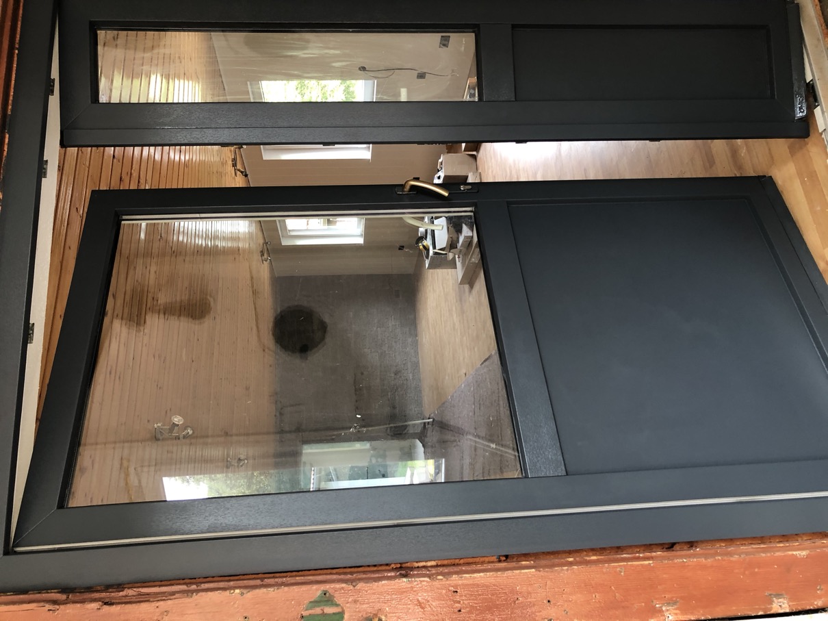 Auch Christine war in Sohnemann´s Apartment nicht untätig und hat die Fensterrahmen und die Eingangstüre von Mahagoni-Maserung in Anthrazit umgestrichen .... schau super aus: