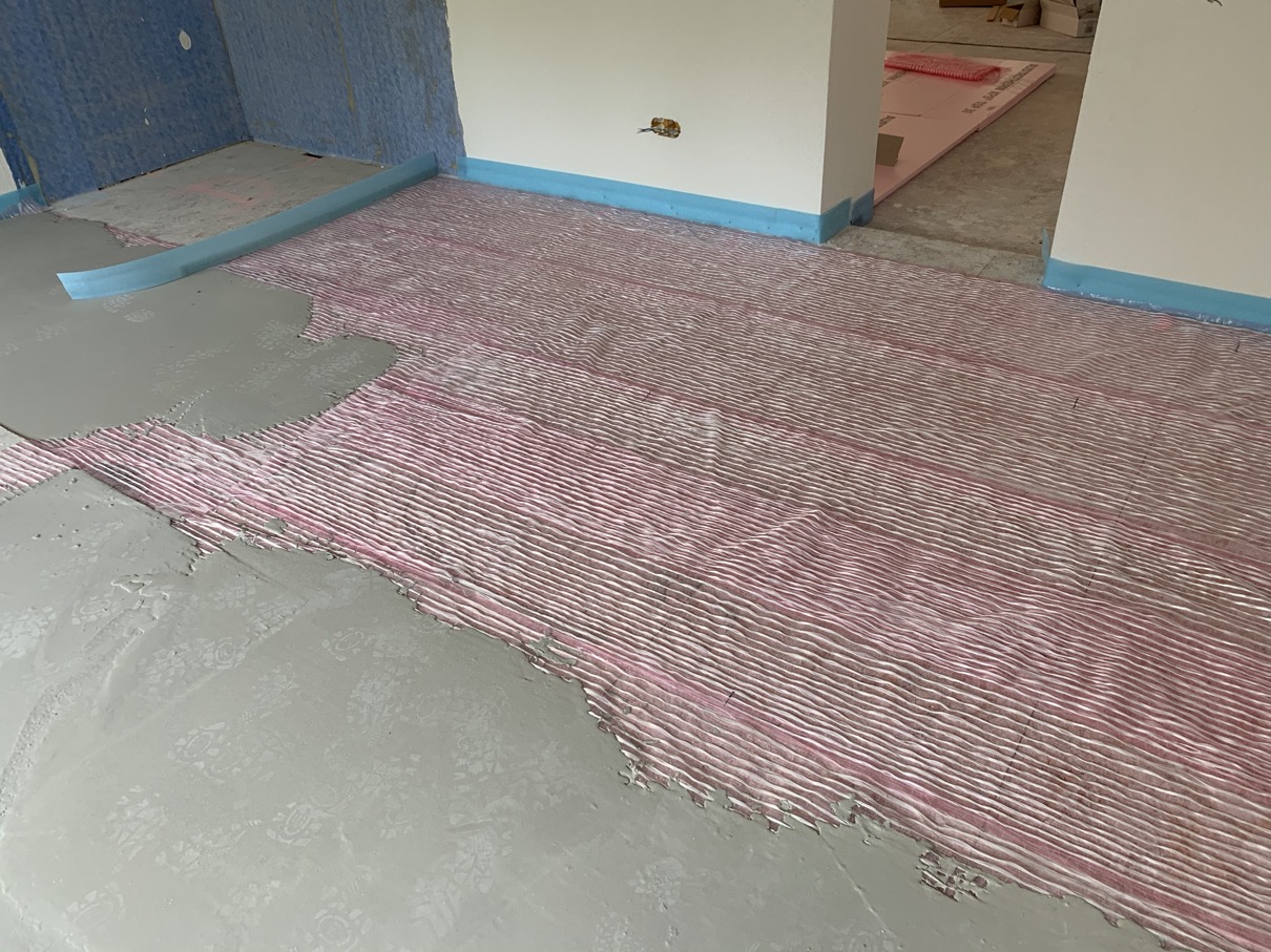 Soderle ... jetzt mal wieder hoch in die Wohnung, denn ich hatte gelesen, dass es besser sei, wenn im Duschbereich eine Sperrbahn aus wasserundurchlässigem Vlies aufgebracht werden würde .... entsprechend für beide Bäder (EG / UG) besorgt und im EG aufgebracht: