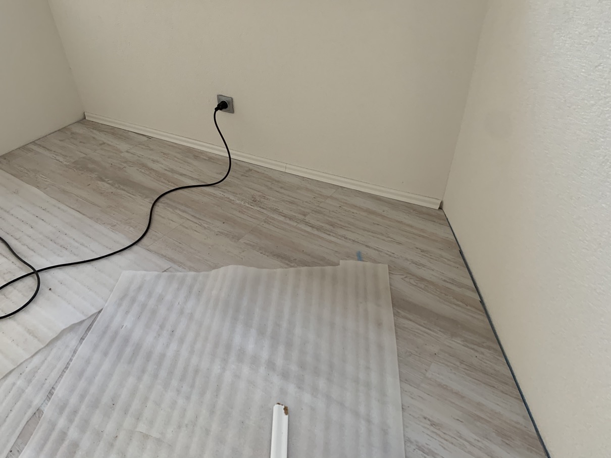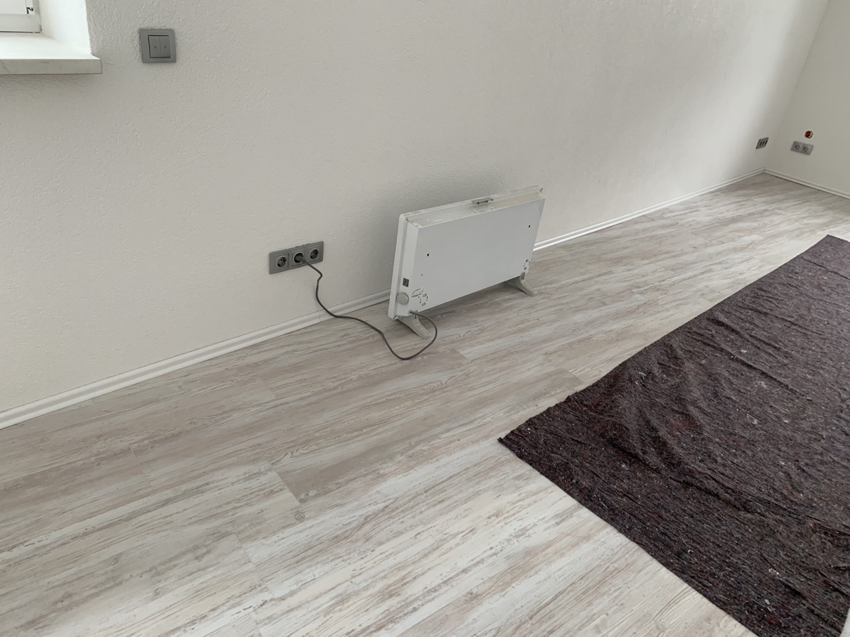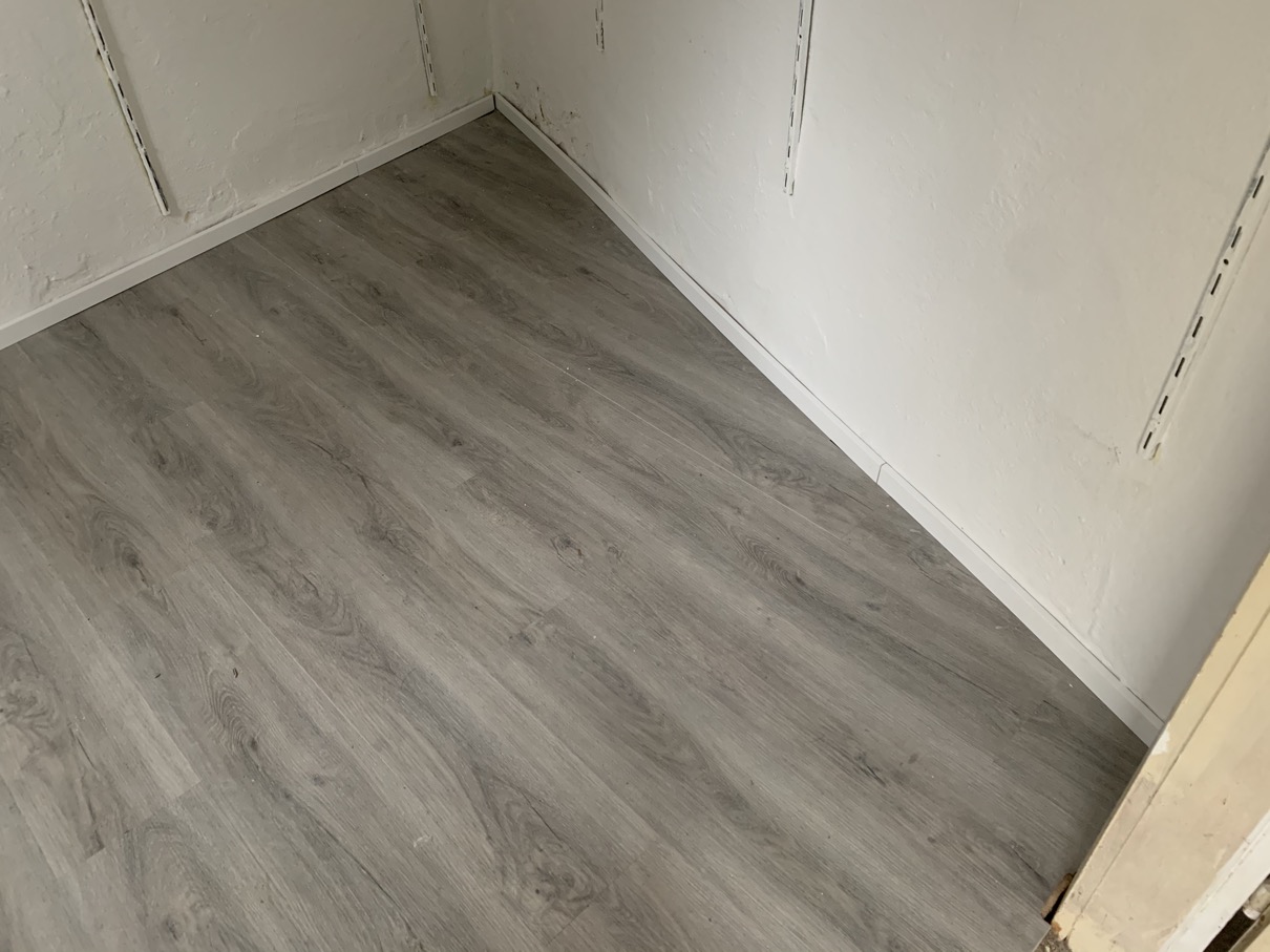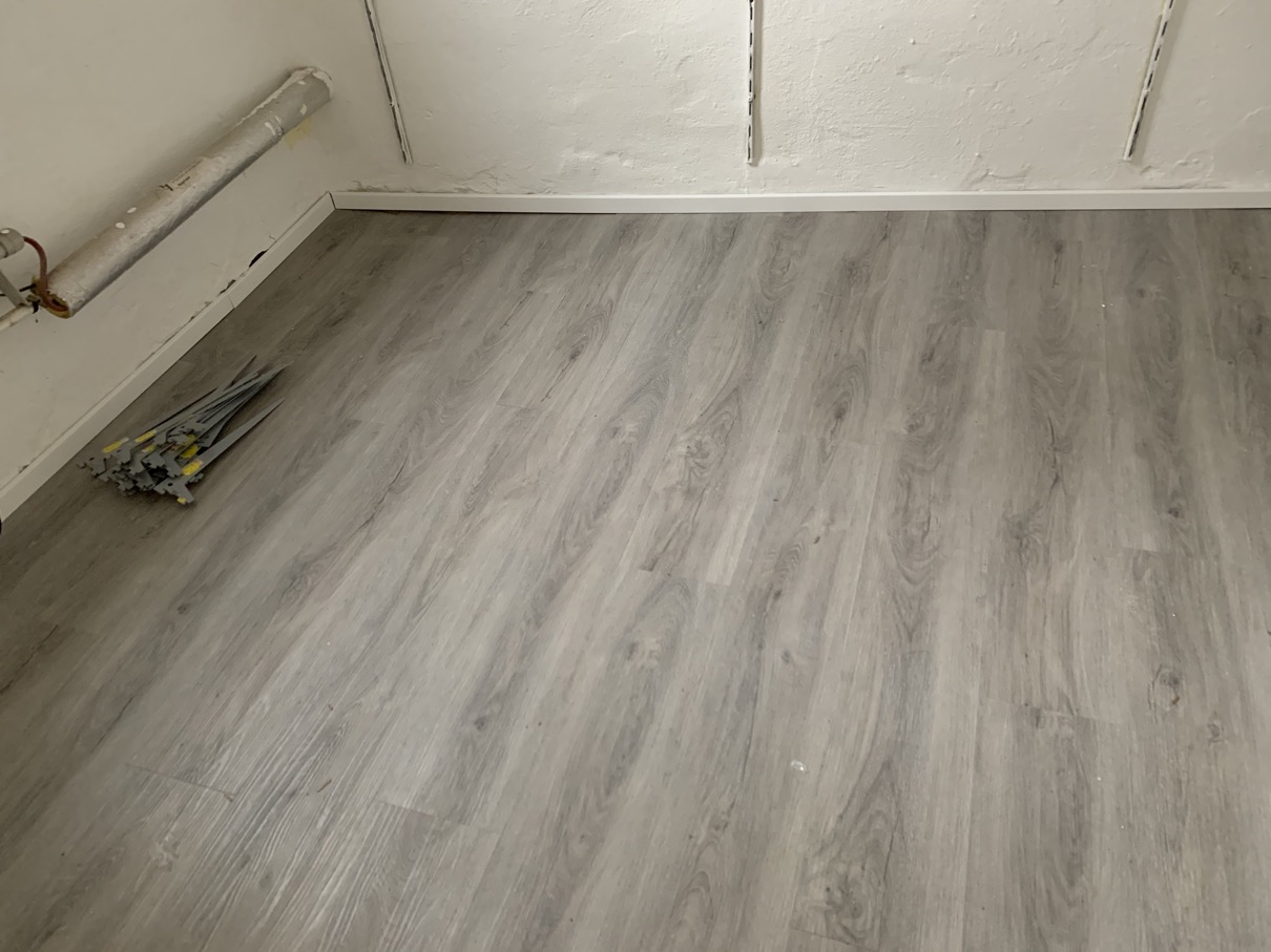b) Samstag dann voll motiviert gestartet und den Boden im Heizungskeller mit Vinyl (gleicher Bodentyp wie Wäschekeller und Vorratsraum) verlegt: