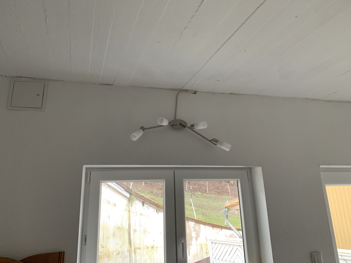 anzubringen. Wir haben mehrere Versuche gestartet - hilft nix, da fehlen noch Teile, da meine Idee, mit 450-Bögen zu arbeiten nicht funktioniert (käme zu nahe an das Holz, damit zu hohe Brandgefahr. Umplanung ist angesagt und Neubestellung von Teilen -> hier stockt nun die Arbeit, was aber nicht schlimm ist, ist eh schon wieder Samstag Abend.