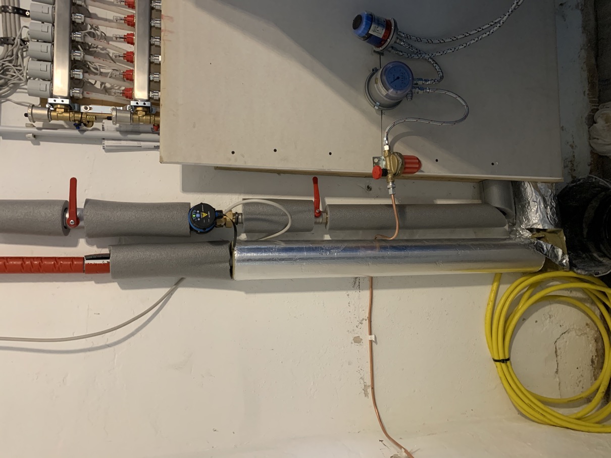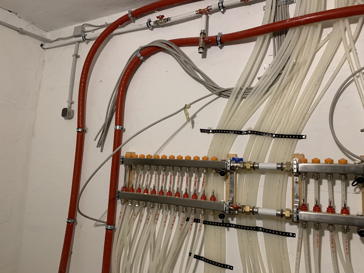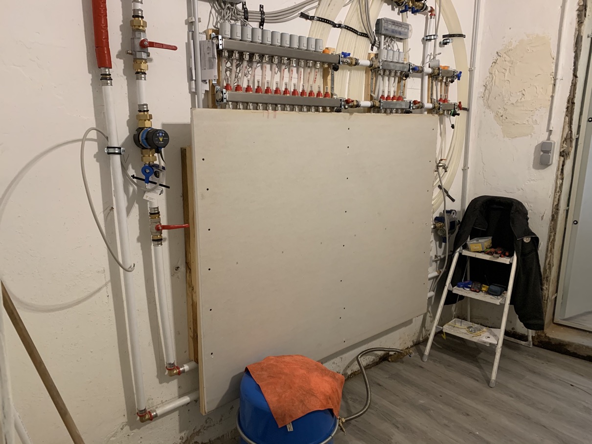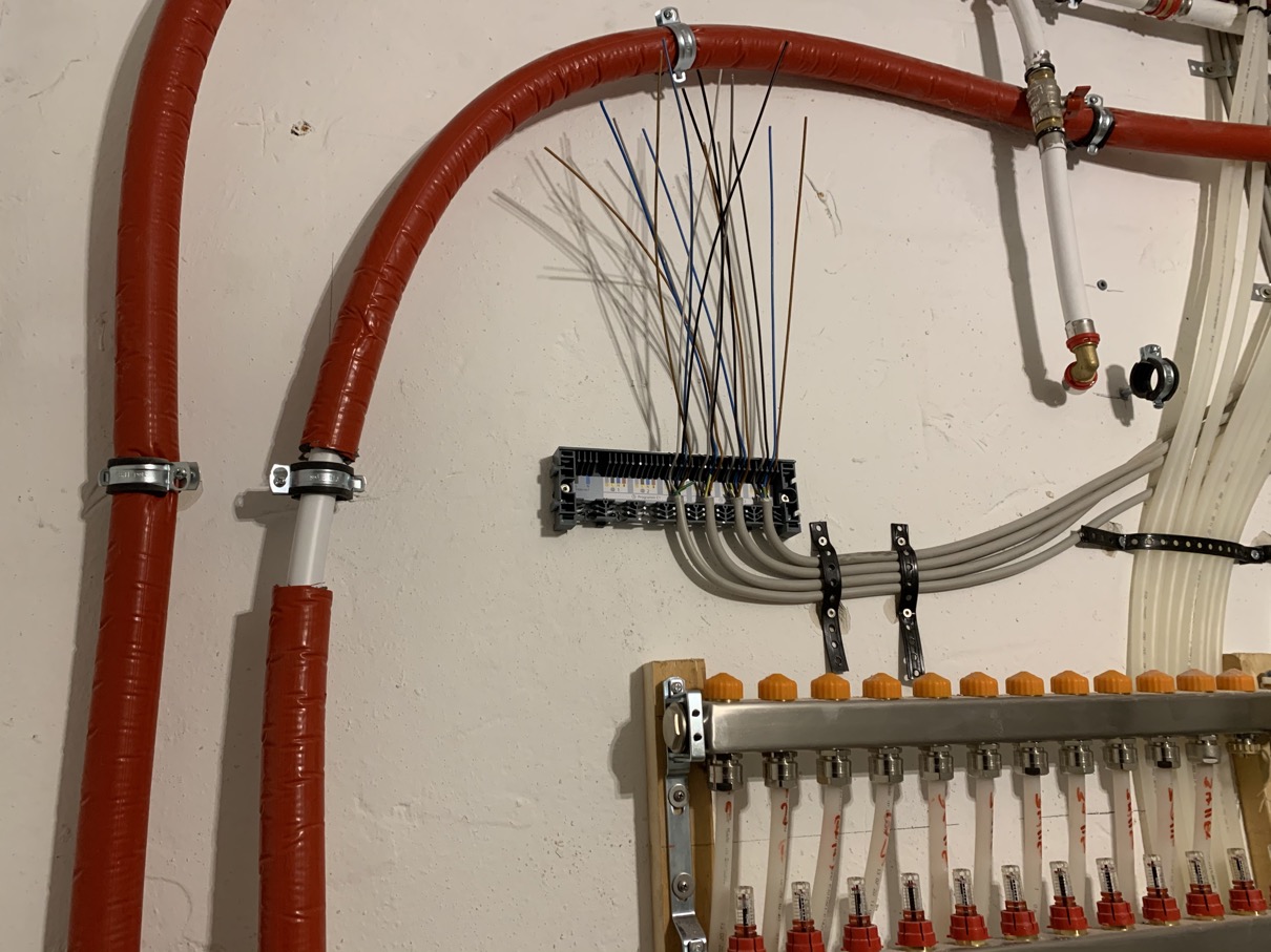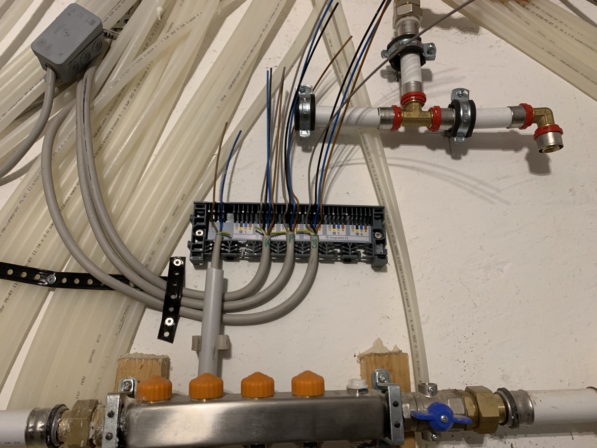 Das ging ganz schnell - waren schließlich nur ein paar Quadratmeter (und ja, Trittschalldämmung liegt darunter 😊). Nächster Schritt sodann die Elektrogrundinstallation in diesem Raum, heißt Steuerung über Heizungsnotschalter für alles was die Heizung selbst anbelangt und permanenter Stromkreis für Licht und Wartungsarbeiten.