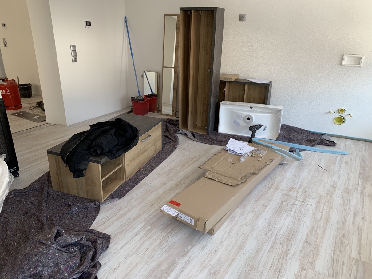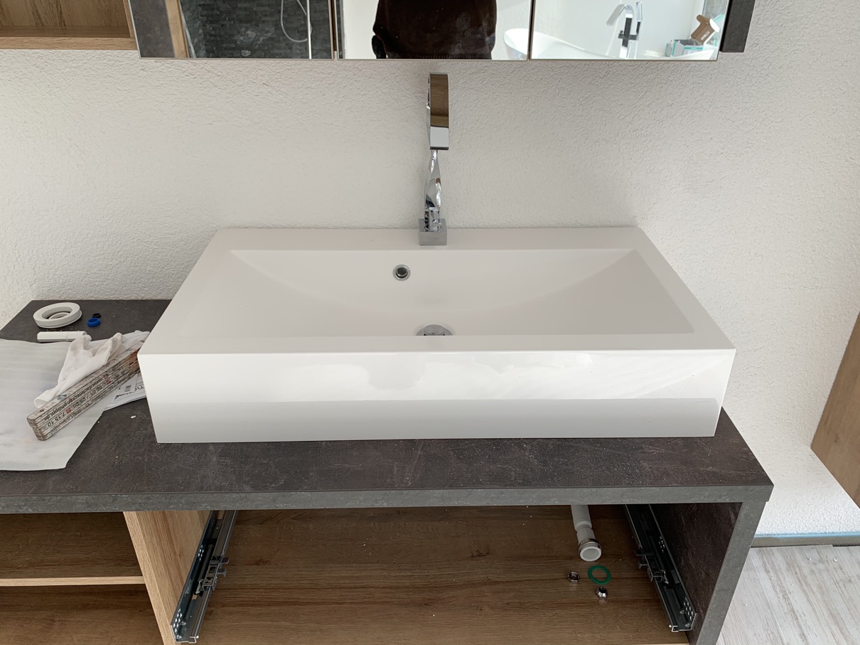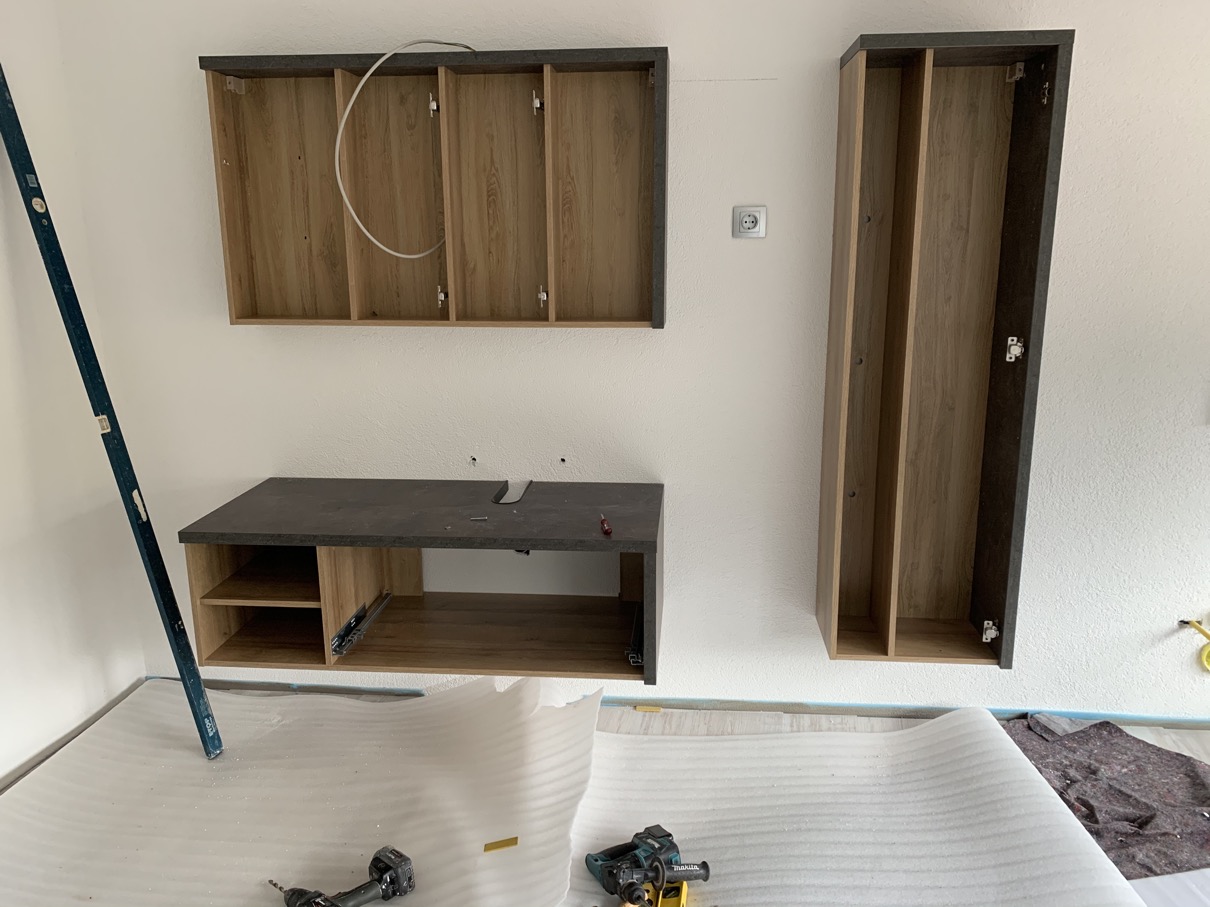 Wenigstens haben wir noch die Türen an die Badmöbel angeschraubt (war auch eine Herausforderung, da Teile falsch bezeichnet waren) -> schlußendlich war das aber noch ok.
