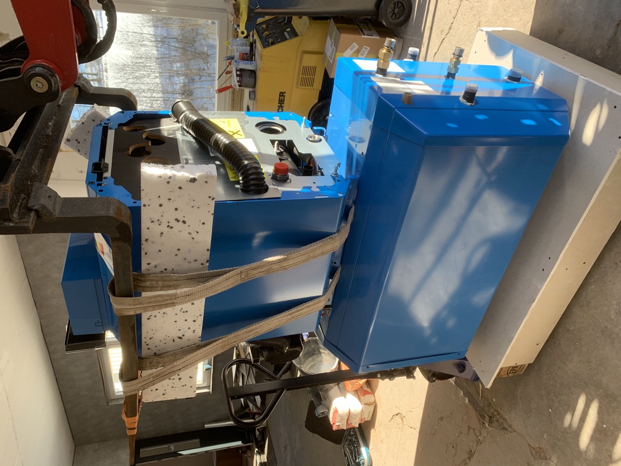 Der Warmwasserspeicher wiegt leer 112 Kg -> das lässt sich ja noch irgendwie händeln - der Heizkessel, der auf den Warmwasserspeicher gehoben werden muss wiegt jedoch 192 Kg -> also die schaffe ich bzw. wir nicht mehr 😏; es sind zwar 4 Tragegriffe unter dem Heizkessel, ich kann mir aber im Moment nicht vorstellen, wer von uns den Kessel hochheben könnte ---> eine andere Idee muss her: