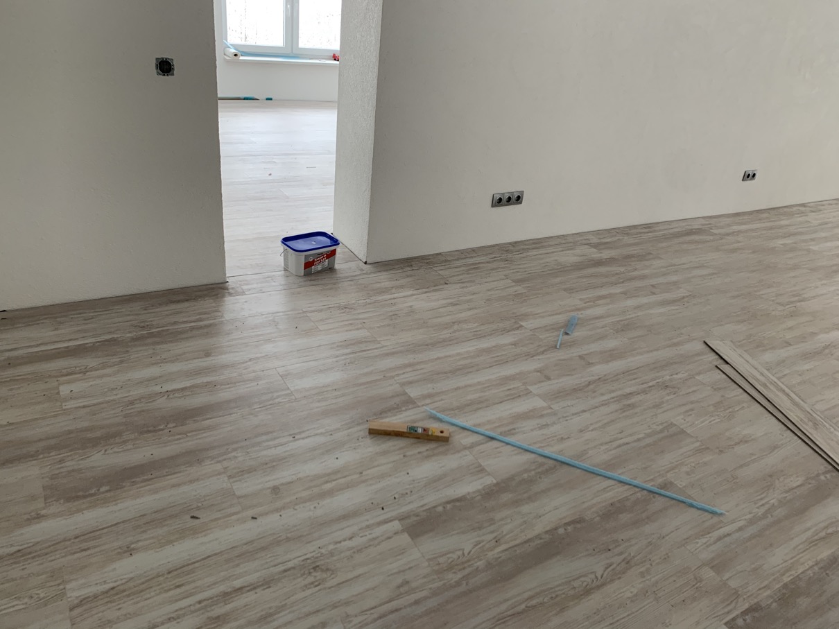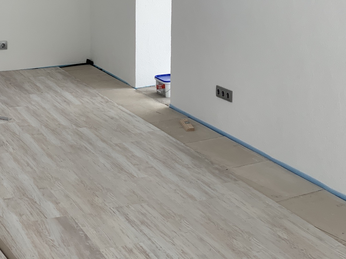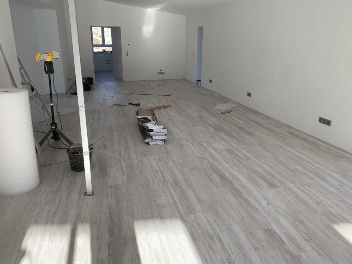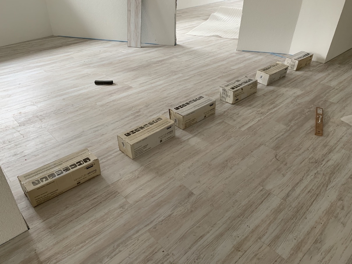 Endlich fertig mit dem Vinyllegen - Knie sind durch -> aber geschafft.