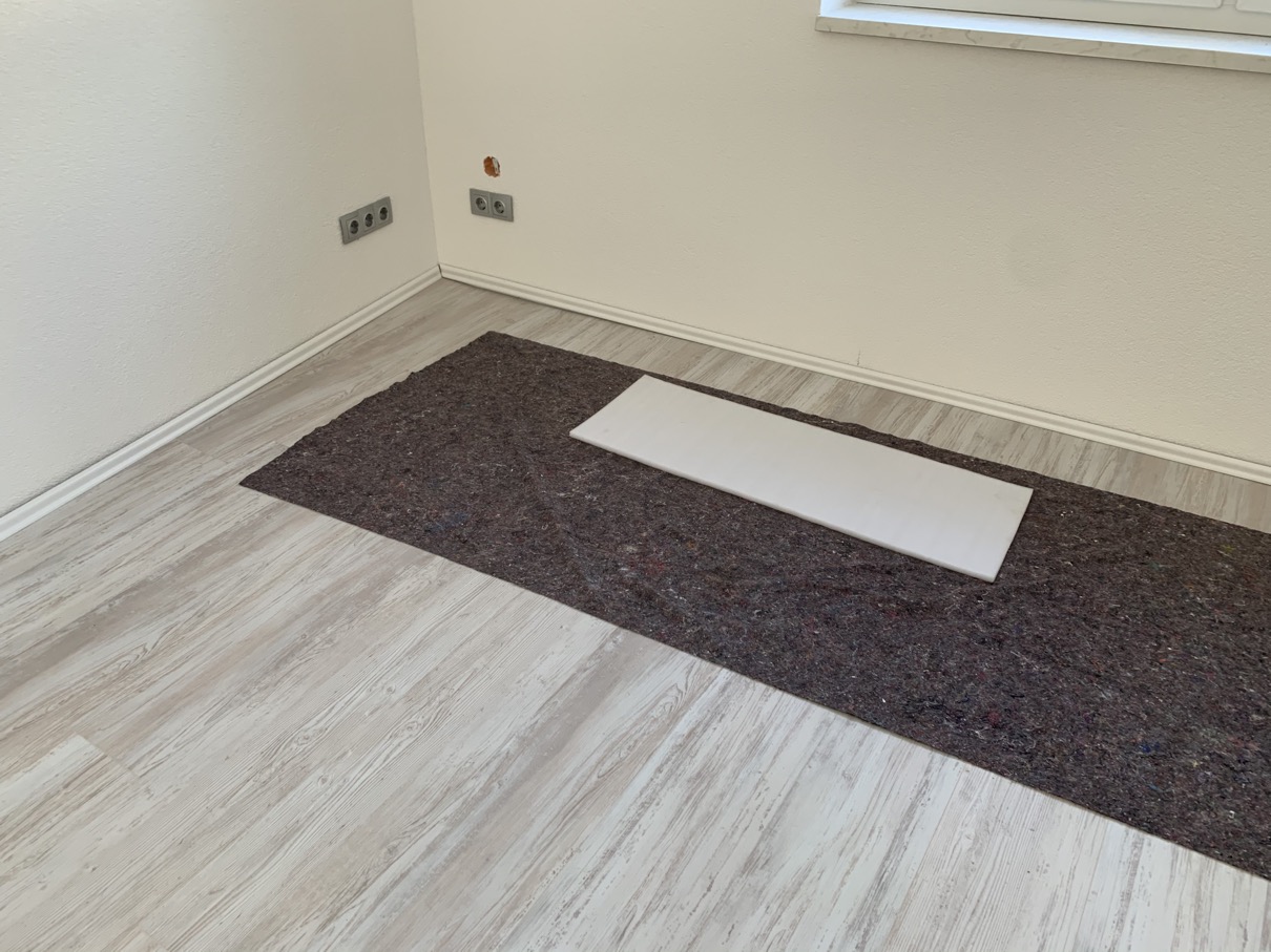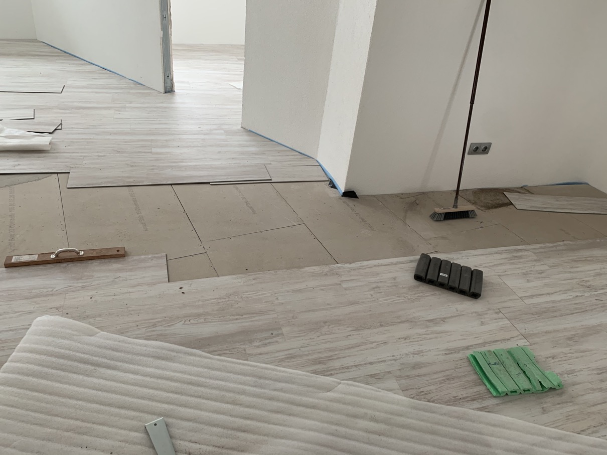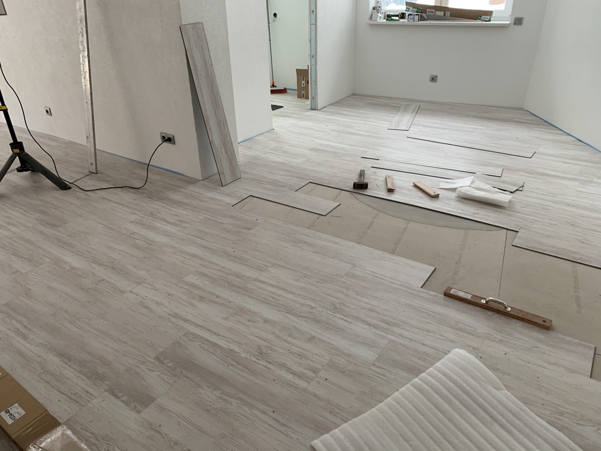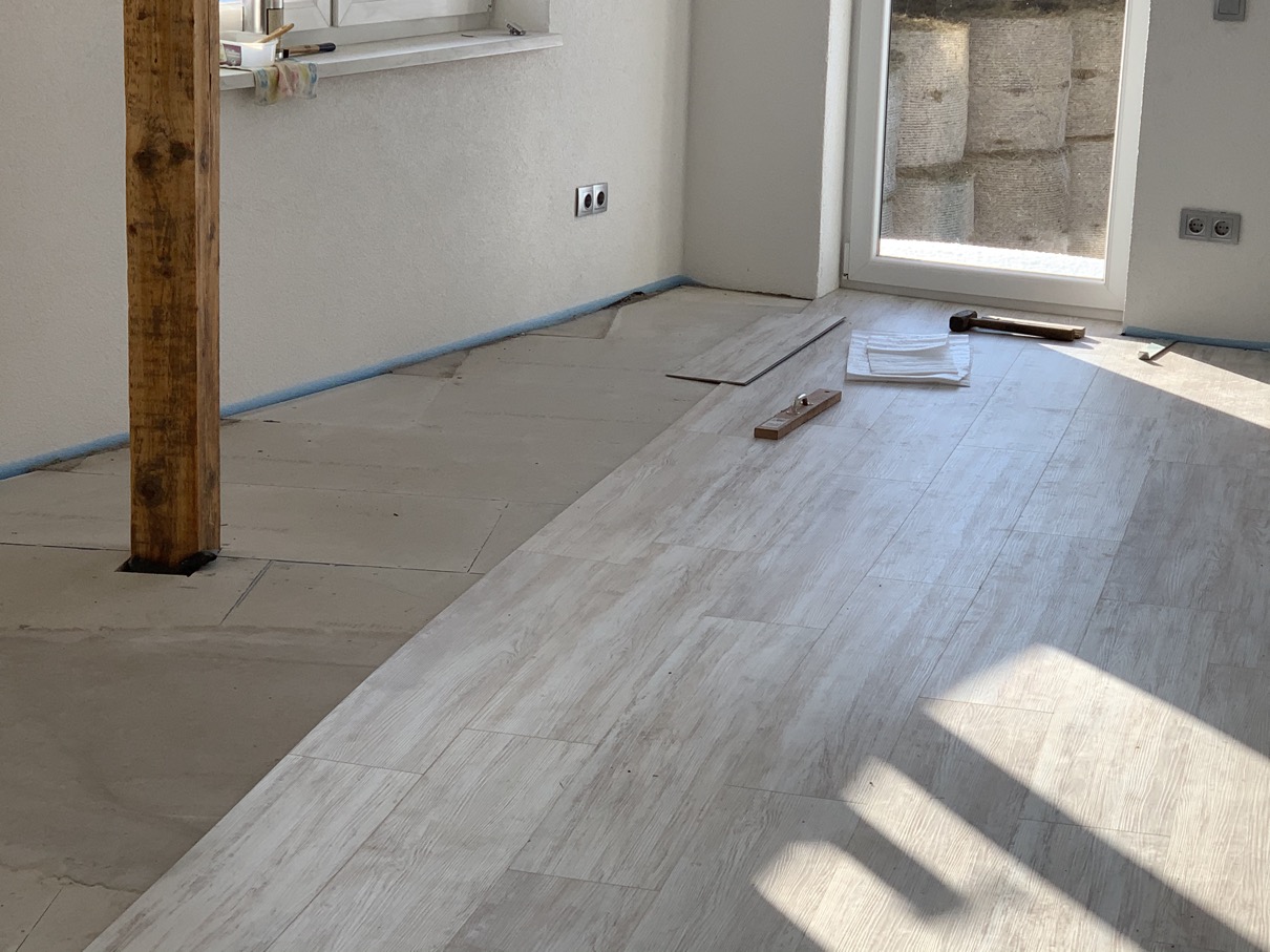 Endlich fertig mit dem Vinyllegen - Knie sind durch -> aber geschafft.