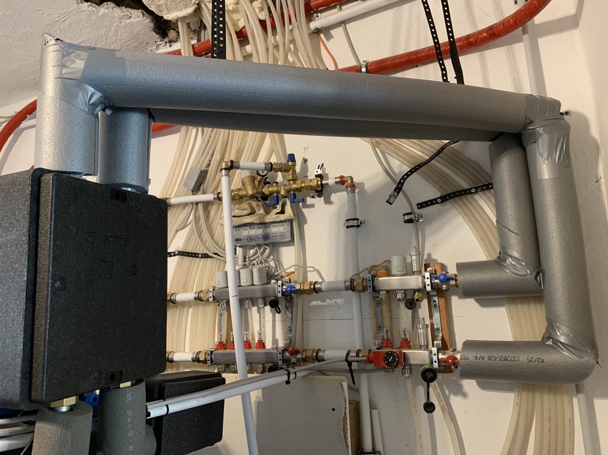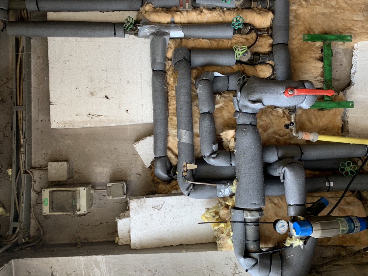 Jetzt wieder zur Heizung ... hier müssen die Rohre noch isoliert werden (damit der Schornsteinfeger-Meister bei der Abnahme nix zu meckern hat 😁):