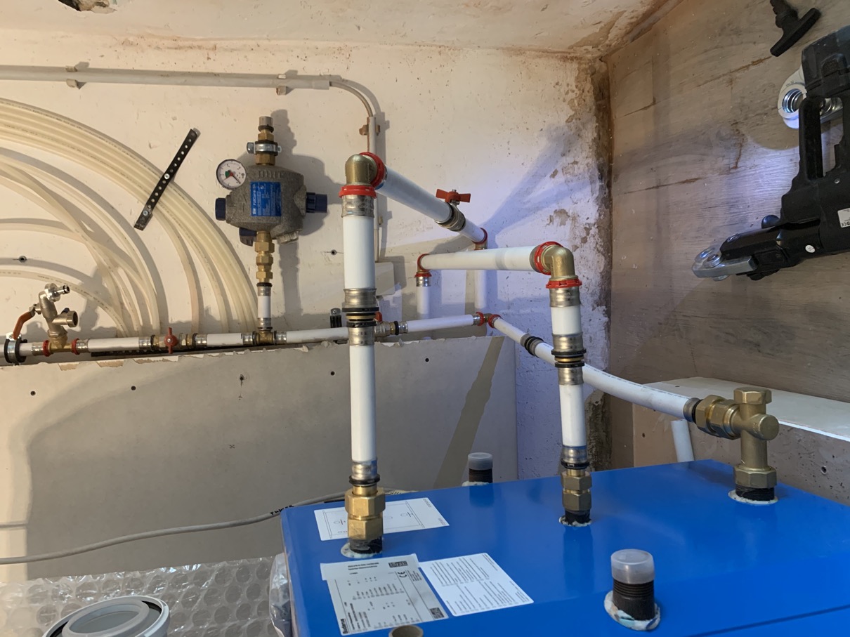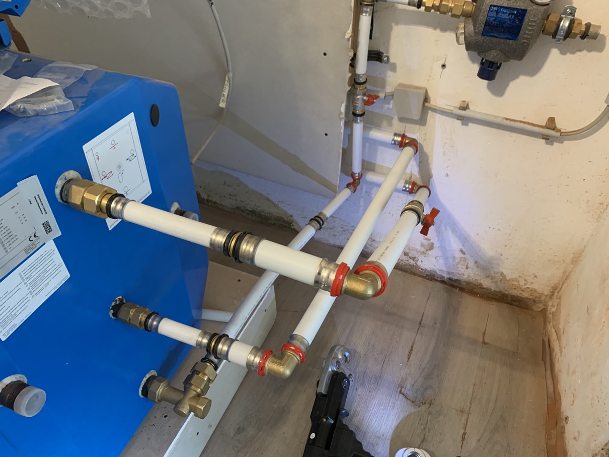 - Vorbereitung Heizungseinbau (also Verrohrung der Kaltwasserzuleitung und der Warmwasser-Zirkulationsleitung bzw. Aufnahme der noch benötigten Teile)