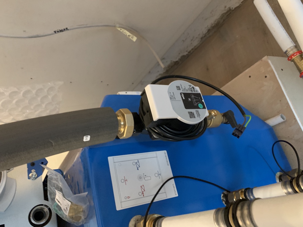 So jetzt nochmals zur Heizungsinstallation: die künftige Zirkulationspumpe (es wird eine selbstlernende VORTEX BWO 155 V SL) noch eingebaut - jedenfalls das Grundgerüst dafür: