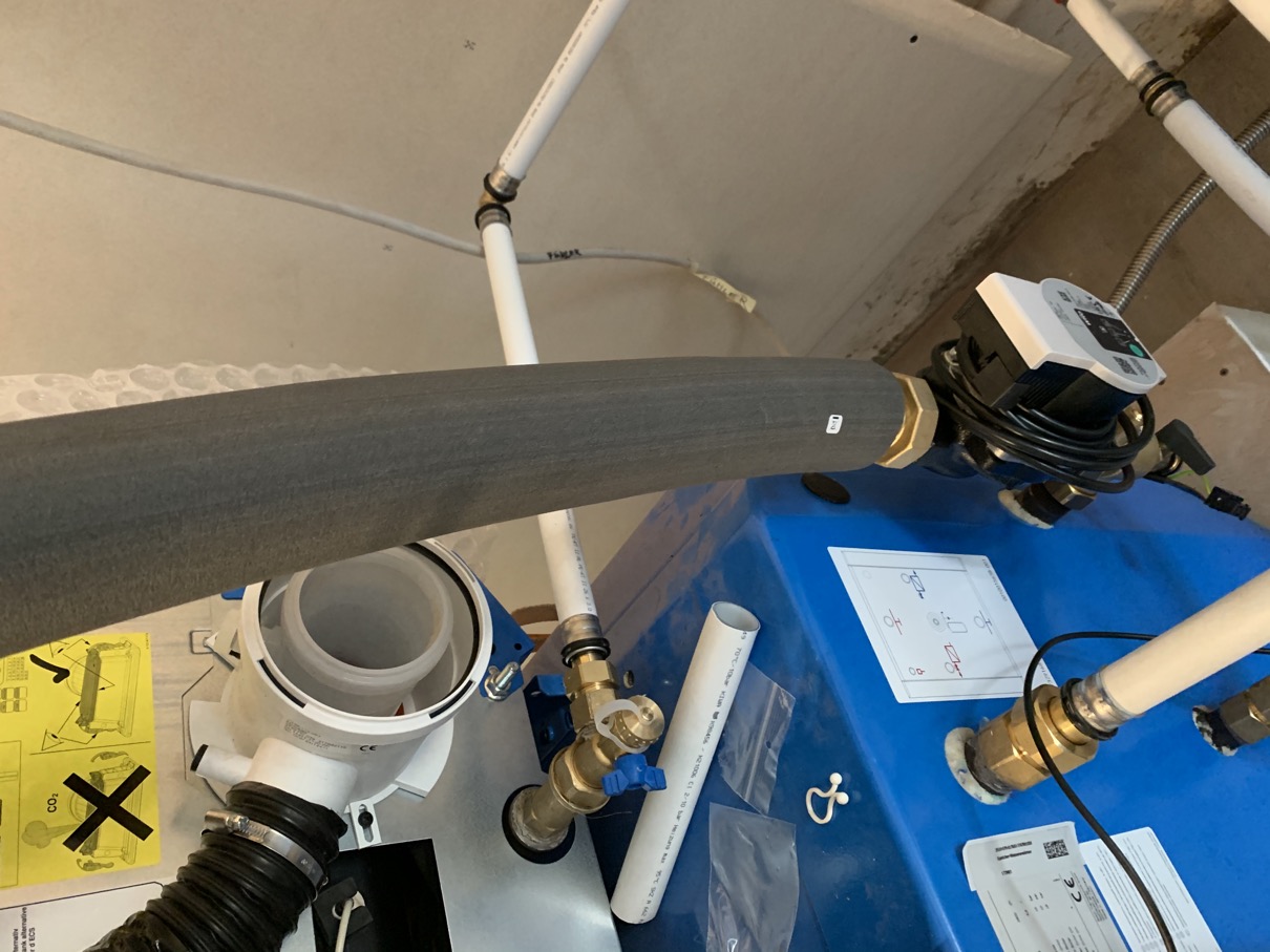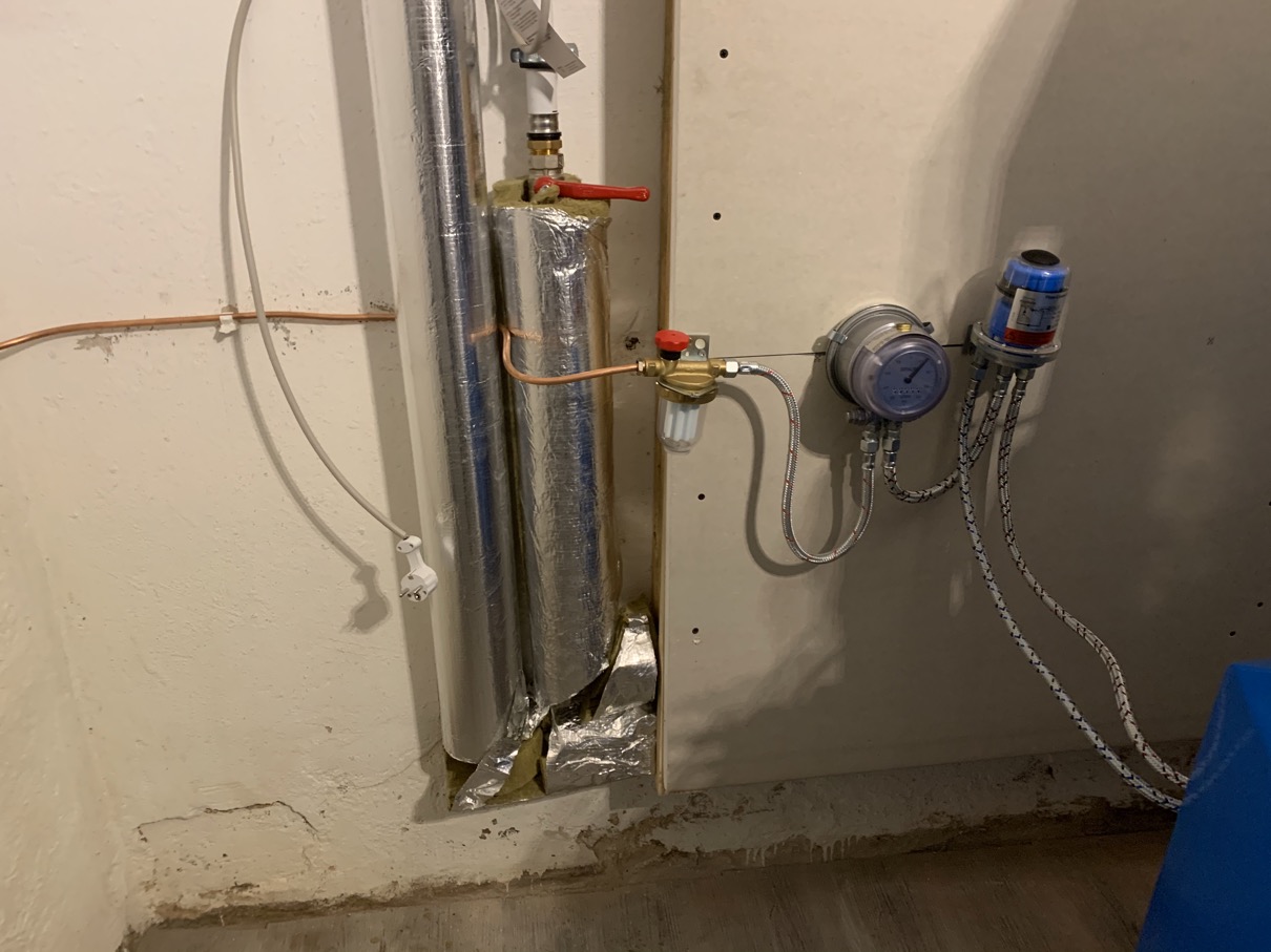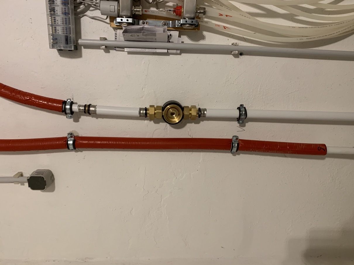 Nachdem ich das falsche Caleffi-Ventil eingebaut hatte muss jetzt die richtige Einheit eingesetzt werden, d.h. alte Einheit rohrmäßig rausschneiden und neue Einheit zusammenbauen, einpassen und druckmäßig auf Dichtigkeit prüfen: