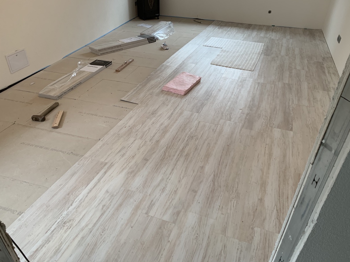 - oder noch Ausbesserungen am Fußboden in der Loft ; da haben ein paar Nuten (😭) wohl nachgegeben;