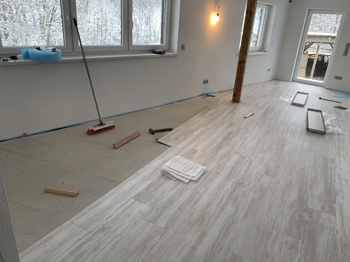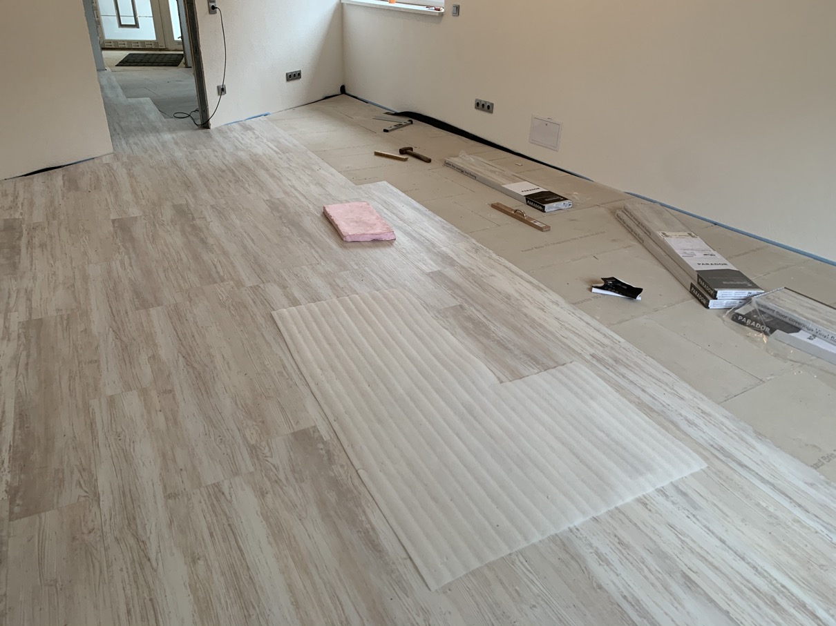 .... und weiter geht's mit dem lieben Vinyl ......nachdem das künftige Schlafzimmer fertiggestellt worden ist muss jetzt der Flur und der Windfang gelegt werden: