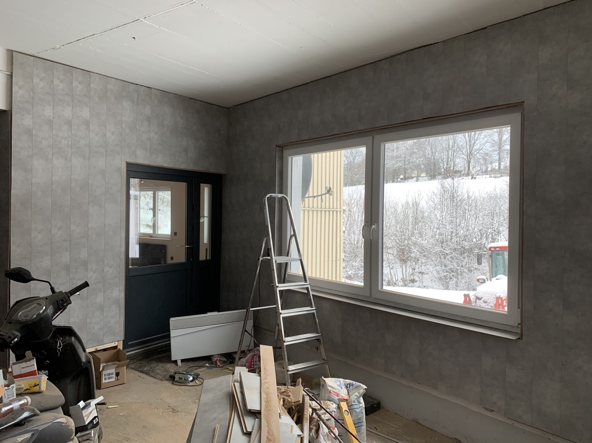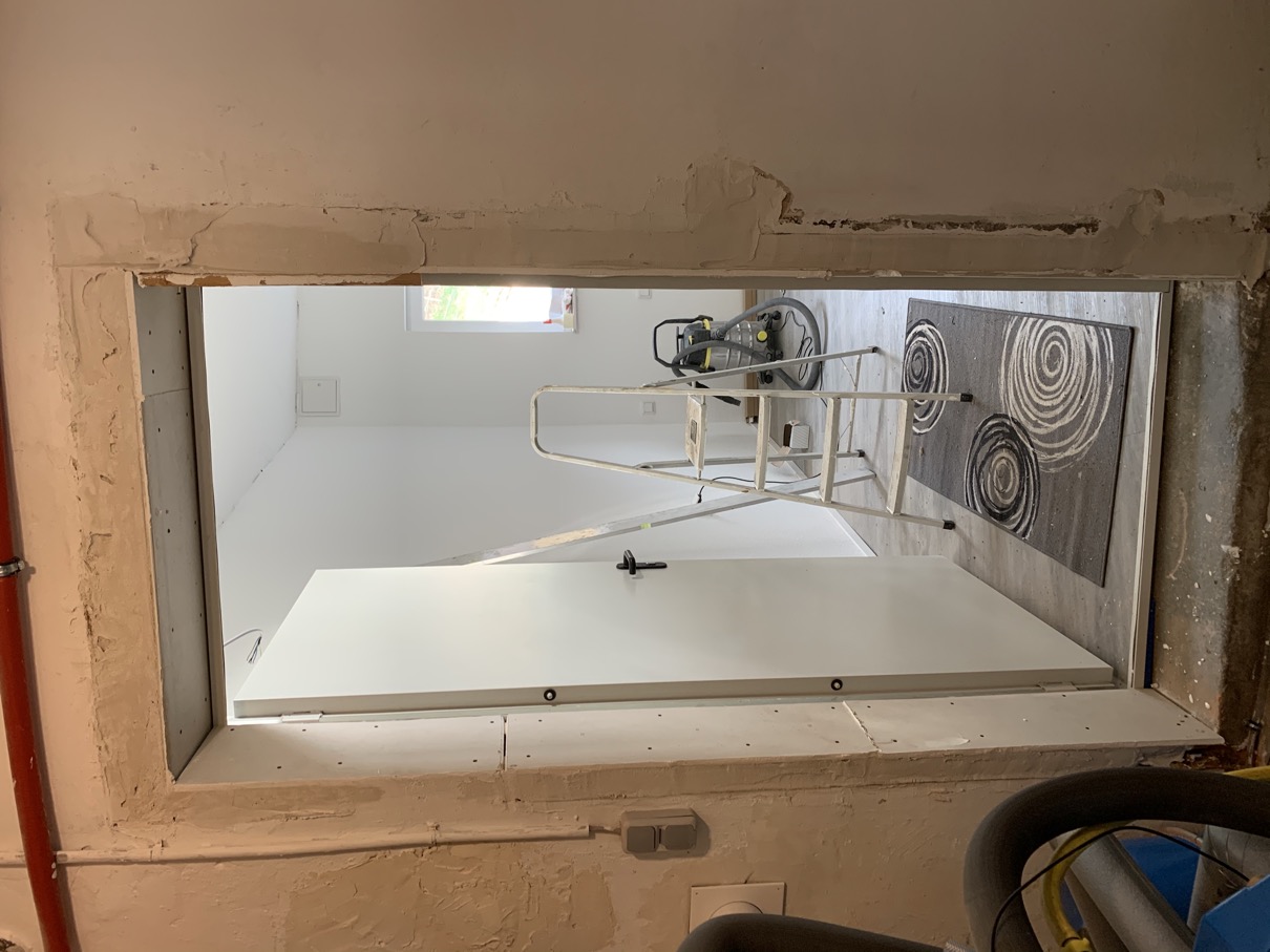 Zunächst einmal die noch "alten" Baustellen (Hebeanlage Kondenswasser, Ölzuleitung, Kamineinfassung und Installation Duschkartusche im Bad Marc-Andre) beendet: