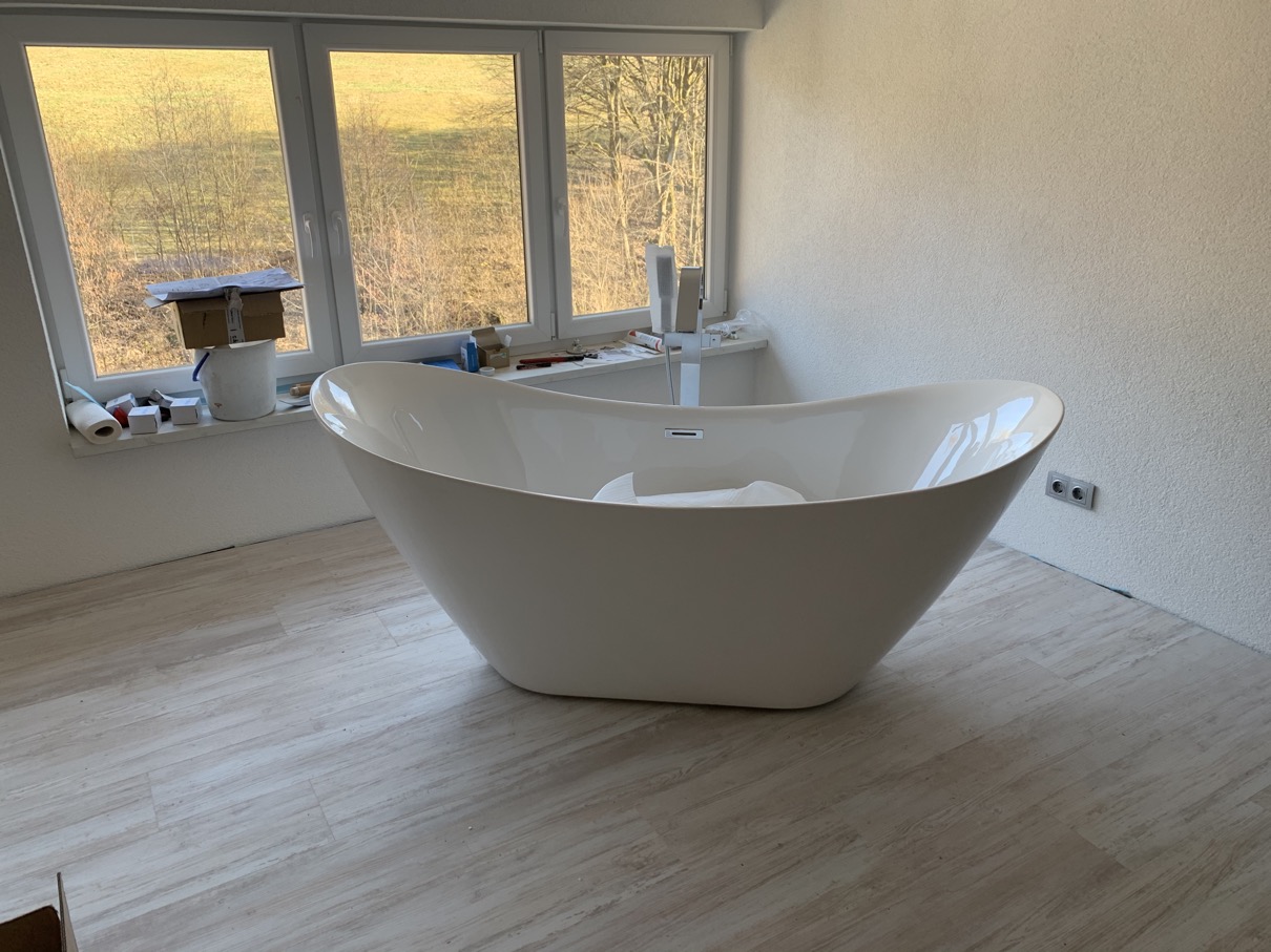 Badewanne steht inclusive Füllarmatur; jetzt kann Tine während des Badens die Pferde auf der Südkoppel beobachten 😊😊 |