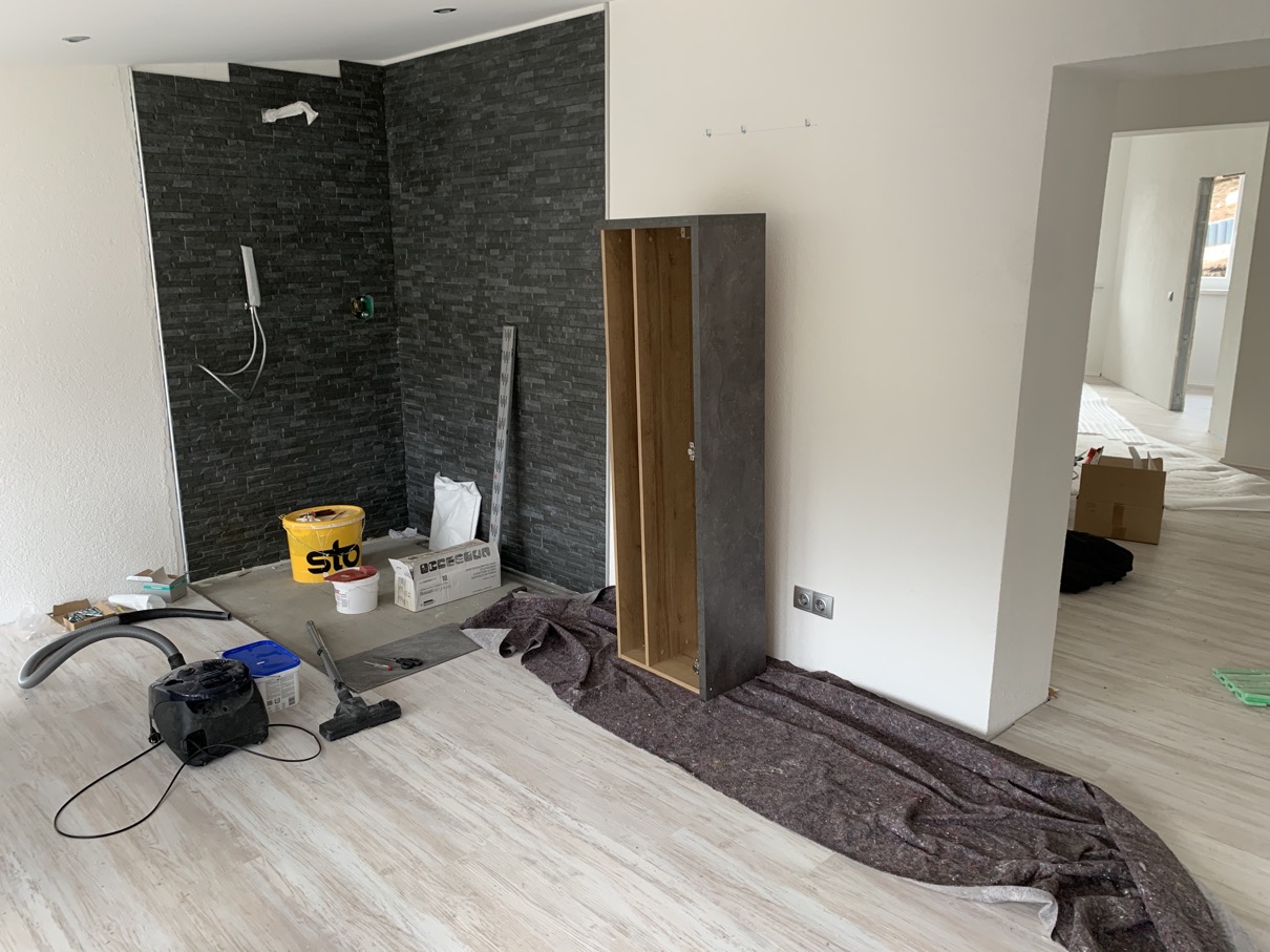 .... auch erledigt; jetzt noch den Boden reinigen .... dann können auch noch die Fußleisten und Schalter ein-/angebaut werden (kommt noch --- immer die Ruhe .... muss ja erst mal alles trocknen 👍) |