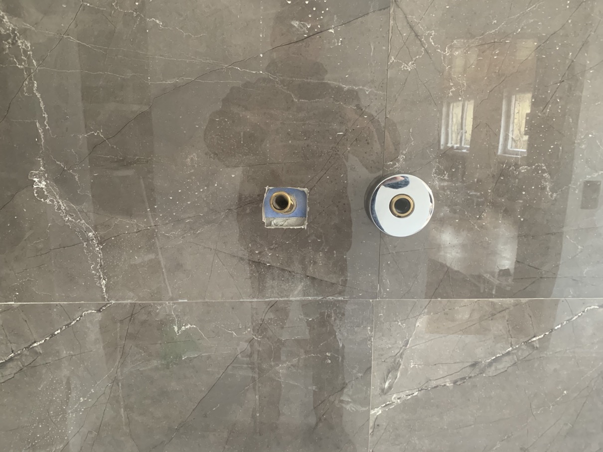 Daneben war ein neues Problem aufgetreten: Beim Entwerfen der Installation im Bad war ich davon ausgegangen, dass bei der freistehenden Badewanne die Befüll- und Brausearmatur quasi ein- bzw. angebaut ist, entsprechend habe ich die Anschlüsse für Warm- und Kaltwasser direkt neben dem Abfluss positioniert.