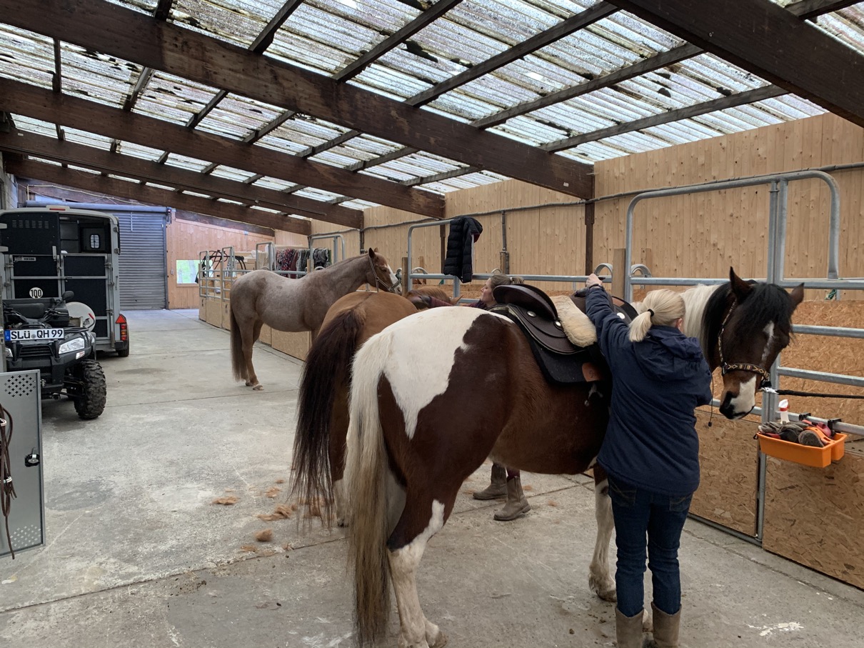 Sonntag war erst mal wieder Reiten angesagt; erstmals mit 3 Pferden gleichzeitig in der Halle ..... geht doch!