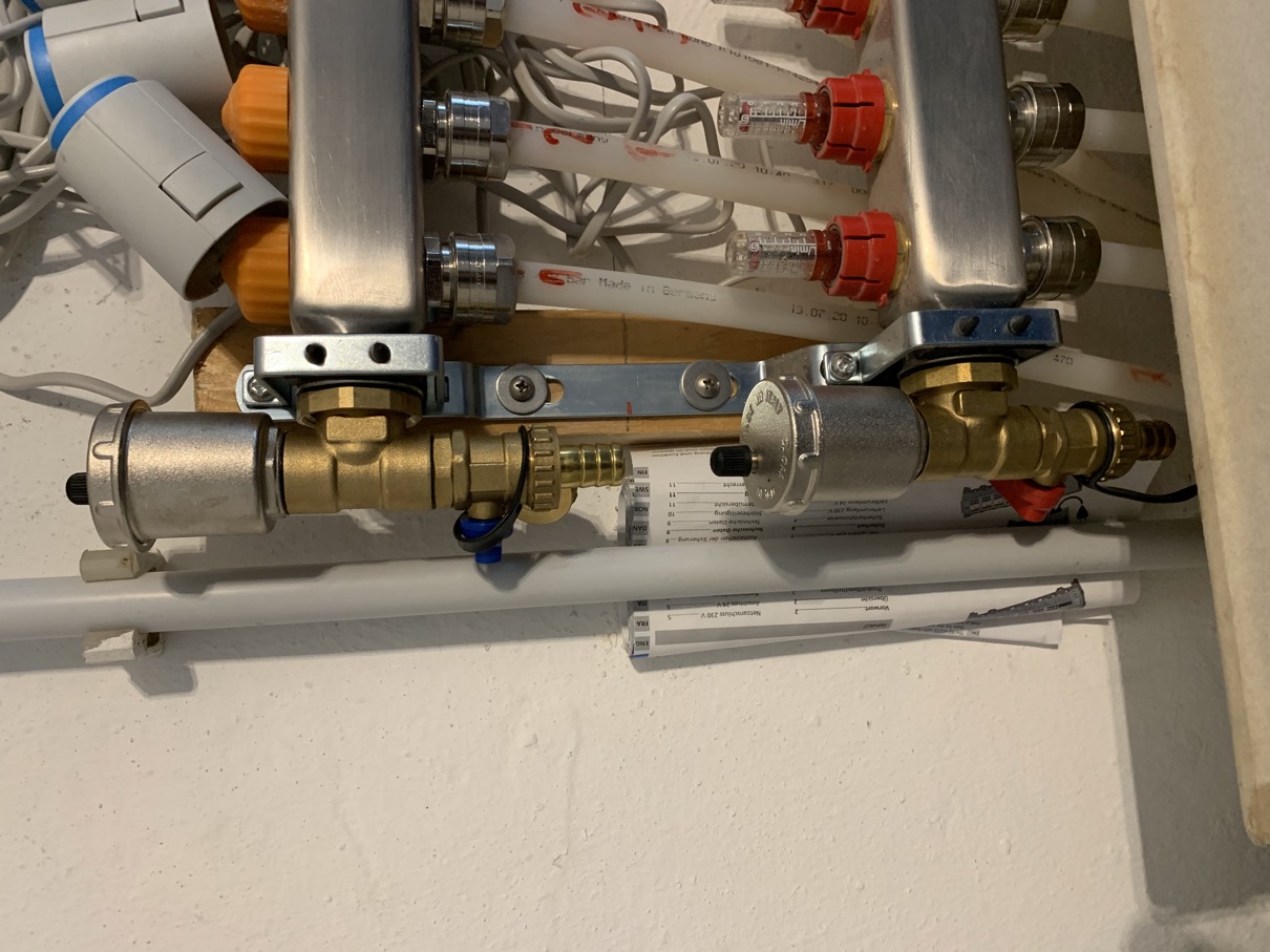 und auch in den 1. Heizkreisverteiler jeweils in den Vor- und Rücklauf eine automatische Entlüftungseinheit gesetzt |