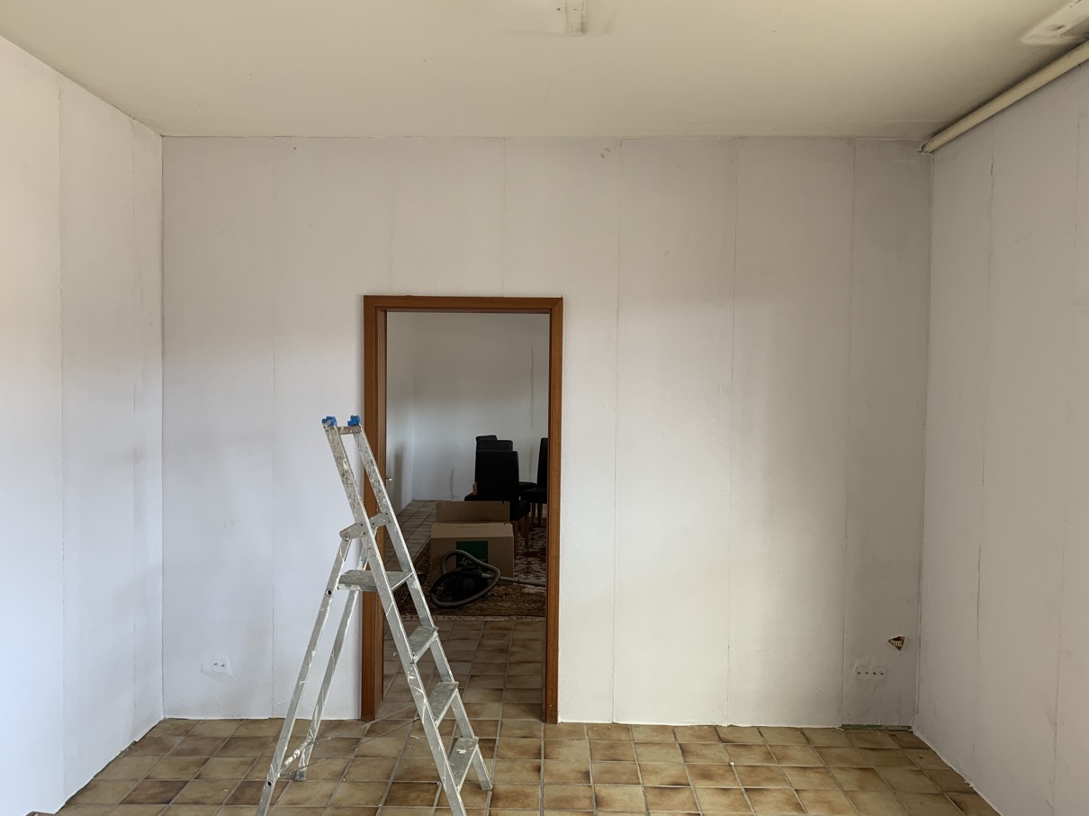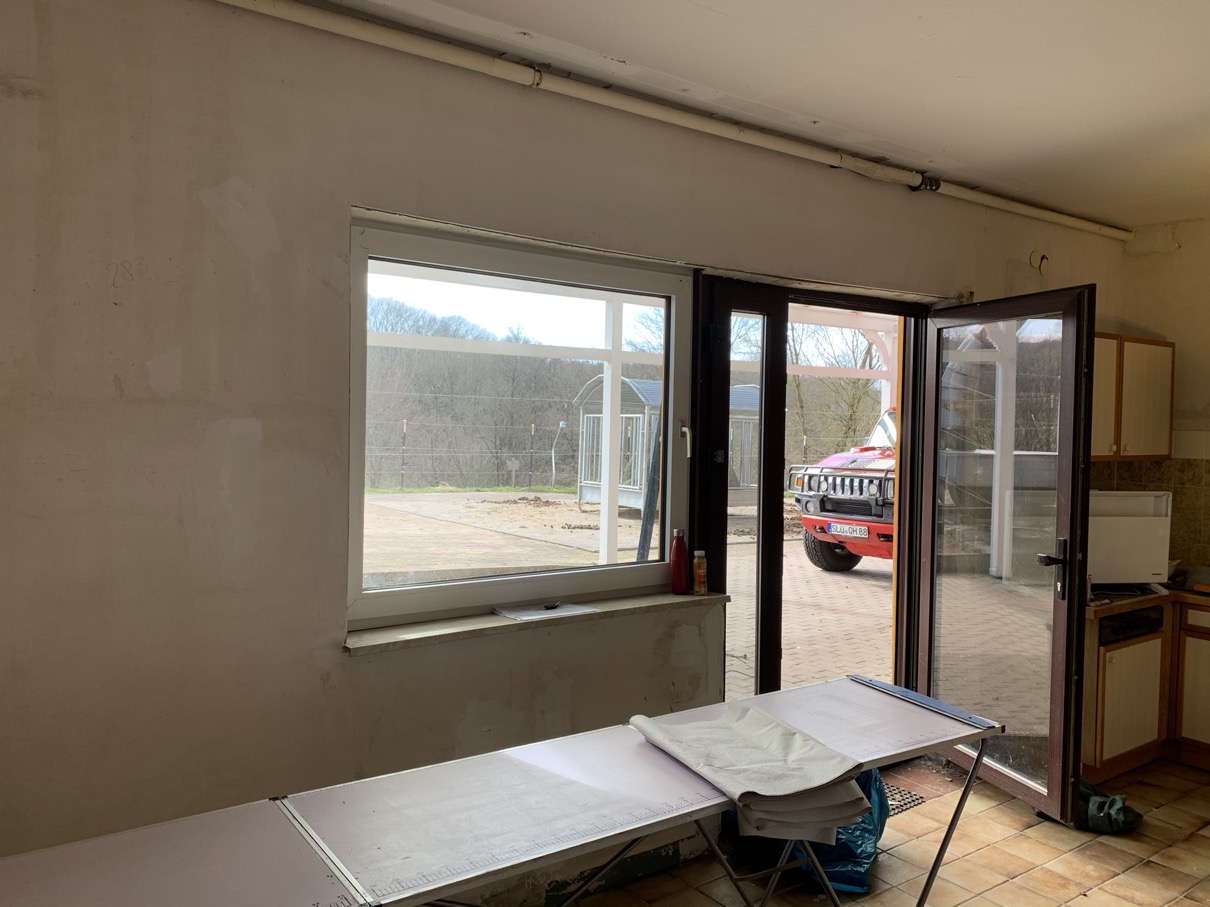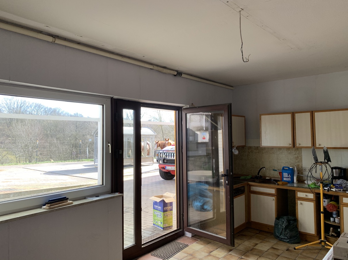 Da wäre doch noch die Küche im Reithallengebäude, die mein Schwager von Tapeten befreit hatte. Das Zimmer könnte künftig als Gästezimmer fungieren .... also muss es zumindest mal wieder tapeziert werden; los geht´s