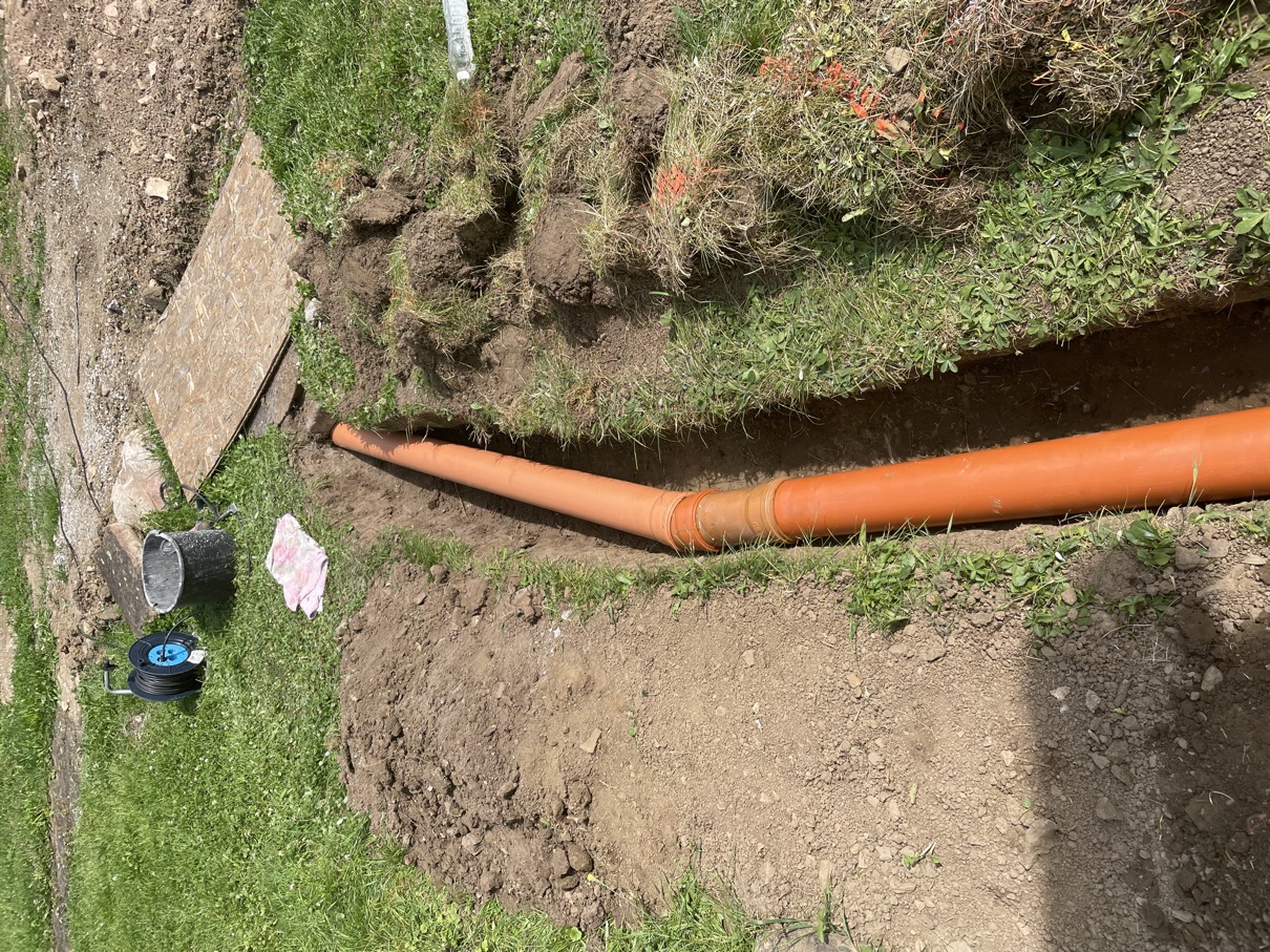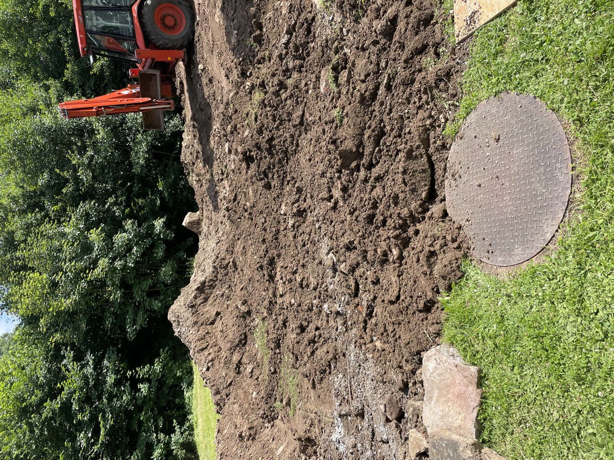Das Ableitungsrohr, das zum Schwarzbach führen soll ... ist definitiv an irgendeiner Stelle innerhalb der Strecke zum Schwarzbach defekt .... heißt aber auch: ich muss einen komplett neuen Graben zum Schwarzbach ziehen .... genau das wollte ich alles nicht machen .... nun werde ich aber dazu "gezwungen" einen komplett neuen Entwässerungsgraben mit einer Tiefe von rd. 1,50 m zu ziehen und mit neuen KG-Rohren auszustatten.
