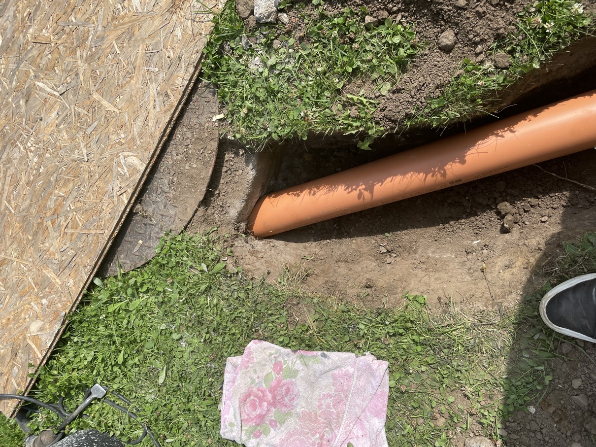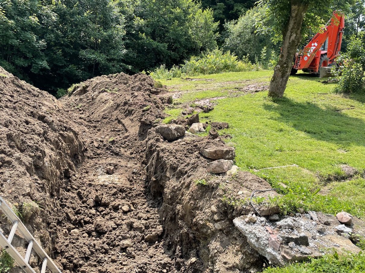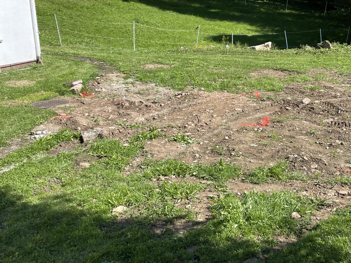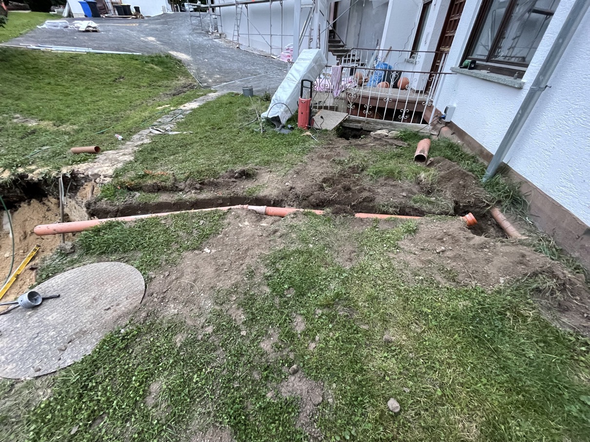 Doof nur, dass durch den Regen der letzten Tage (vor allem am Sonntag, den 04.07.2021) hier alles "abgesoffen" ist, die ausgegrabene Grube vollgelaufen ist .... und natürlich auch die Abwassegrube (ist ja jetzt ein großes Loch drin 😩).