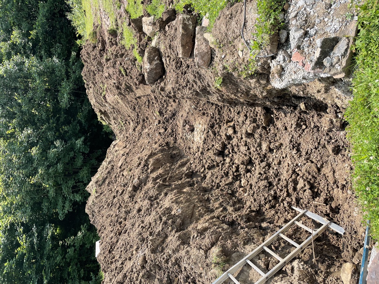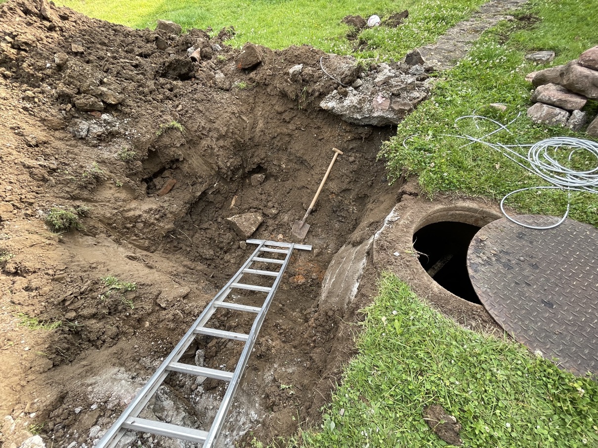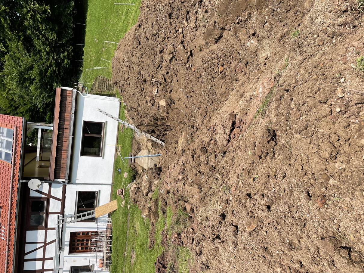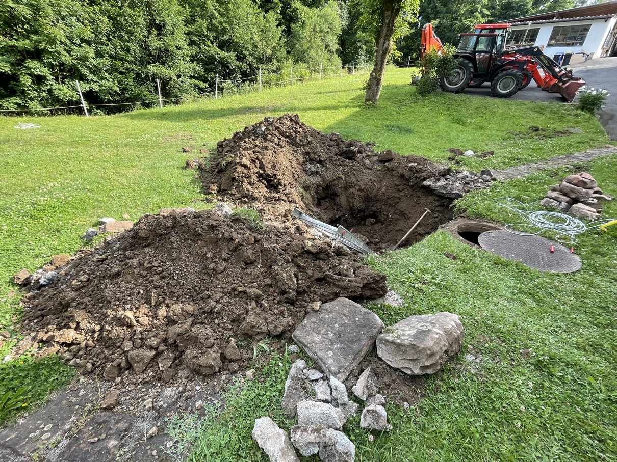 Doof nur, dass durch den Regen der letzten Tage (vor allem am Sonntag, den 04.07.2021) hier alles "abgesoffen" ist, die ausgegrabene Grube vollgelaufen ist .... und natürlich auch die Abwassegrube (ist ja jetzt ein großes Loch drin 😩).