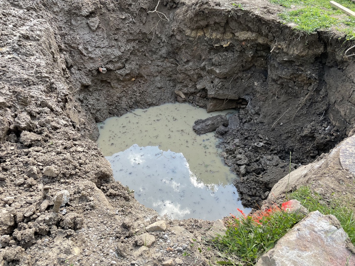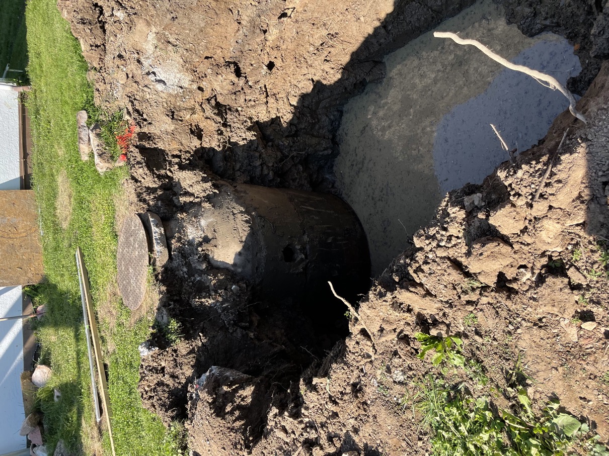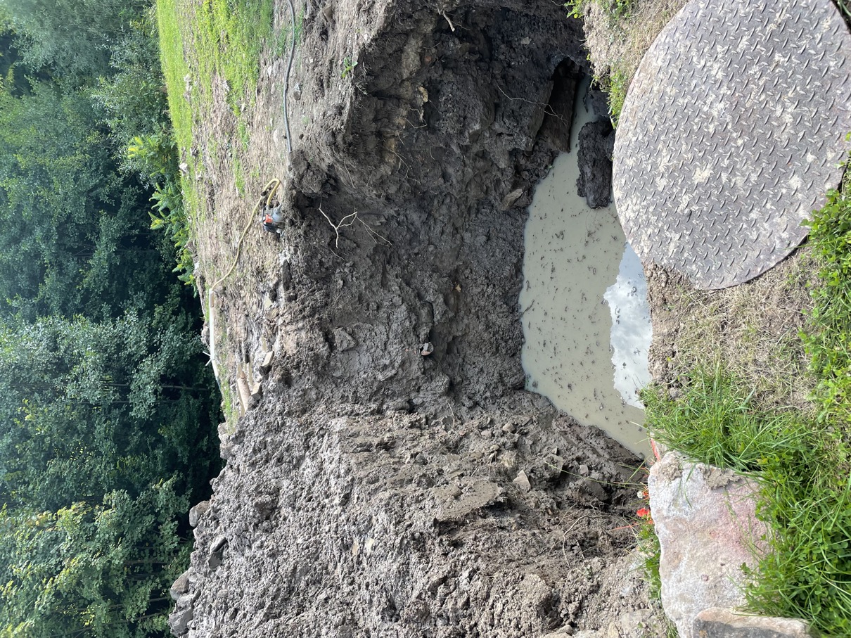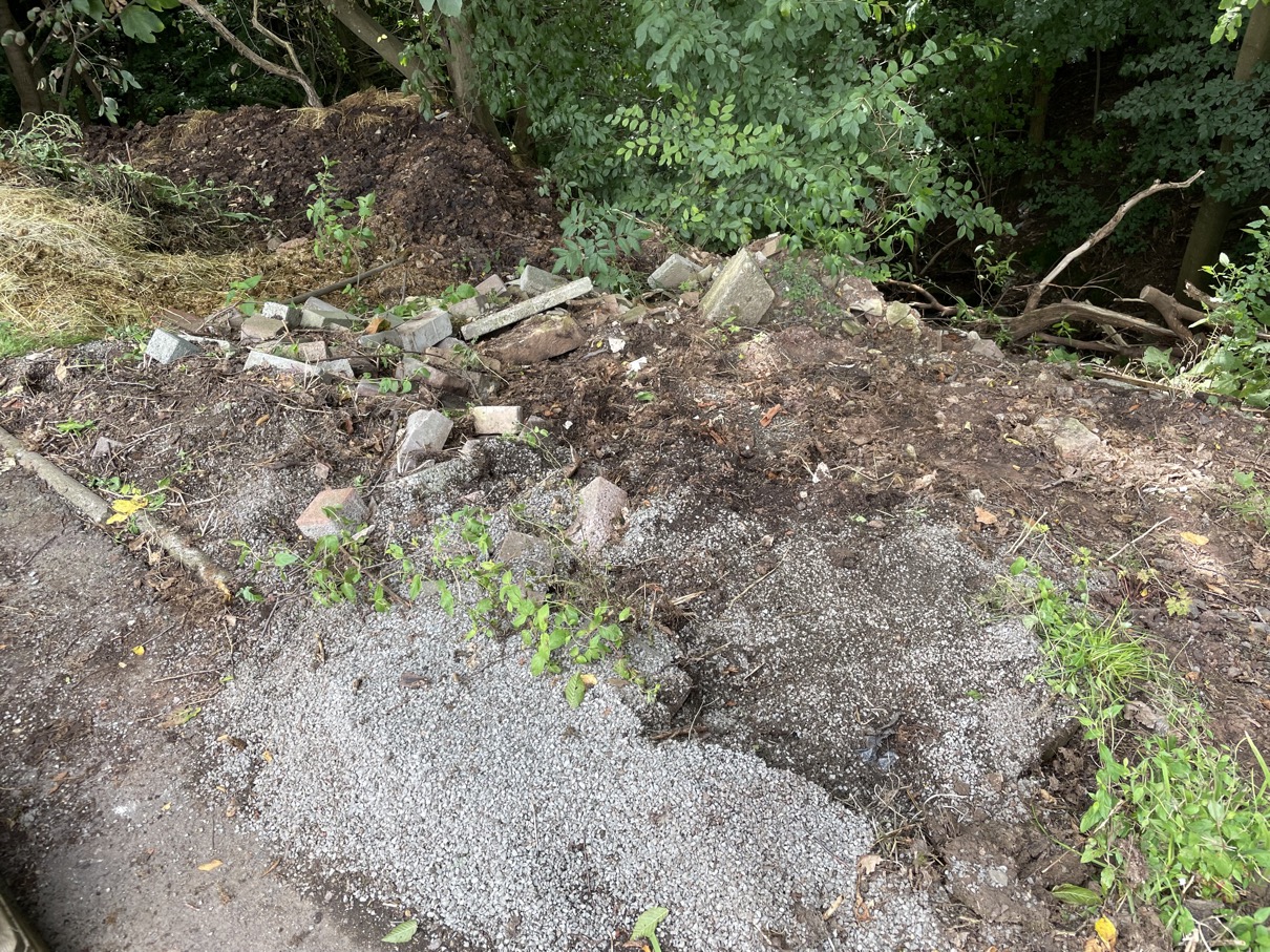 Doof nur, dass durch den Regen der letzten Tage (vor allem am Sonntag, den 04.07.2021) hier alles "abgesoffen" ist, die ausgegrabene Grube vollgelaufen ist .... und natürlich auch die Abwassegrube (ist ja jetzt ein großes Loch drin 😩).