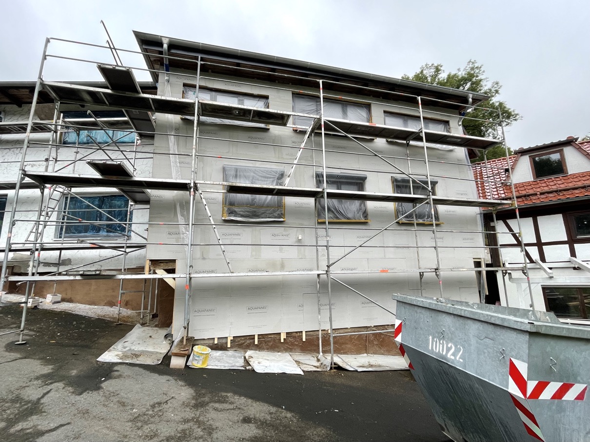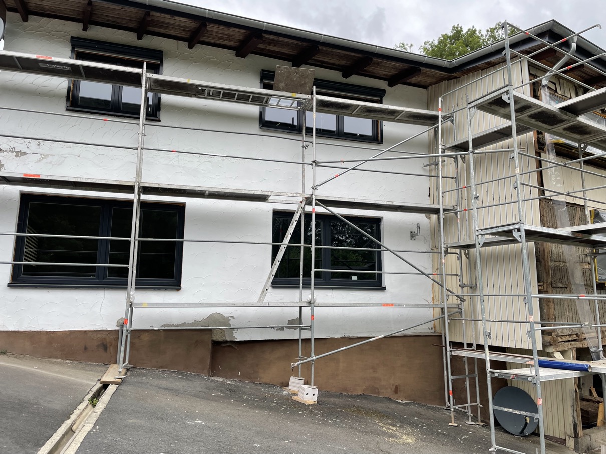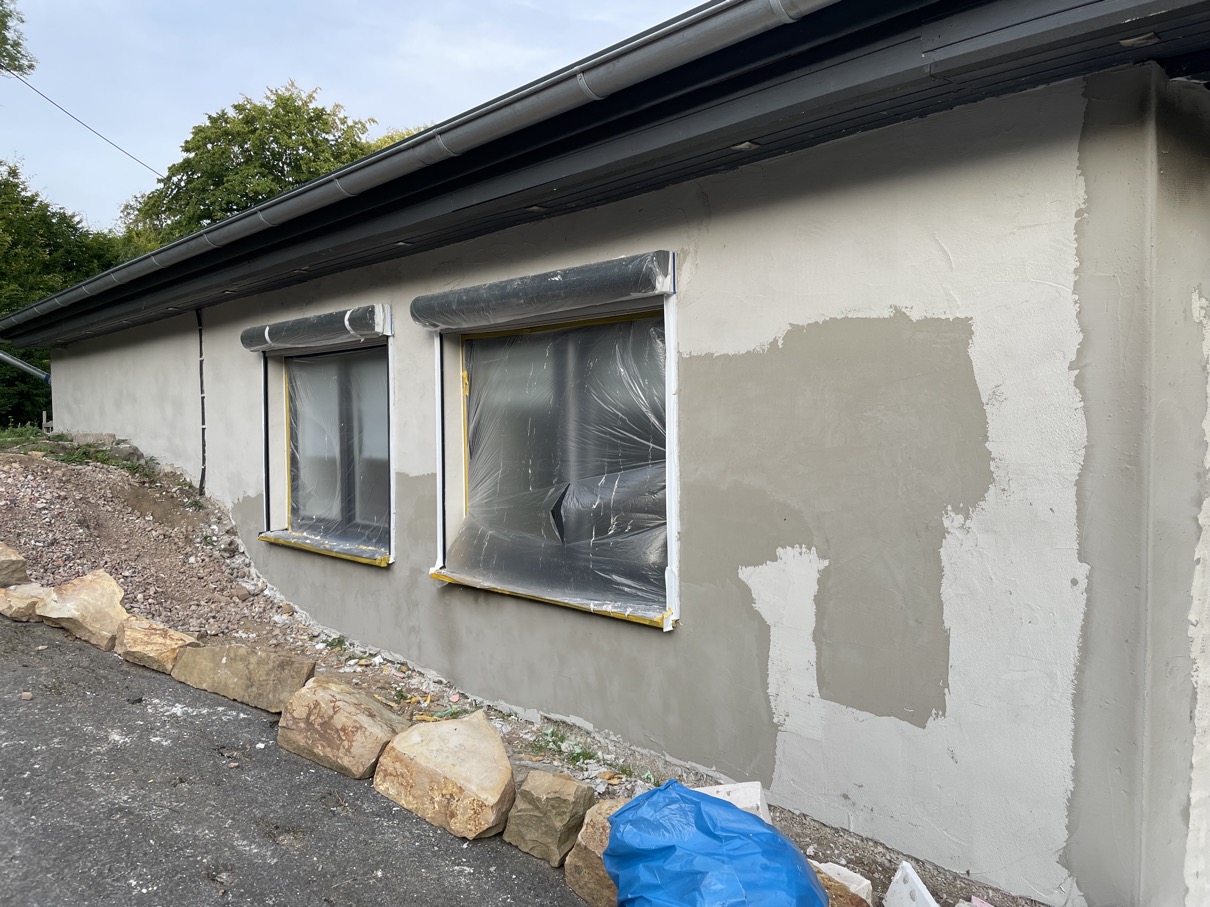 Juuut -> dann schauen wir mal, was die Verputzer bisher des Weiteren geleistet haben (sind sehr unzufrieden mit dem Altbau, da der Altputz sehr wellig ist und der Sockel so gar nicht zum Rest fluchtet, was bedeutet, dass alles mit Platten ausgeglichen und erneut verputzt werden muss):