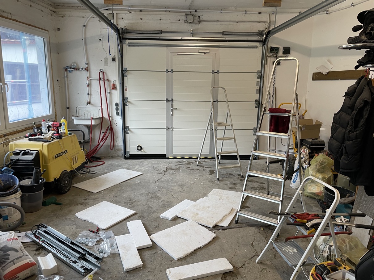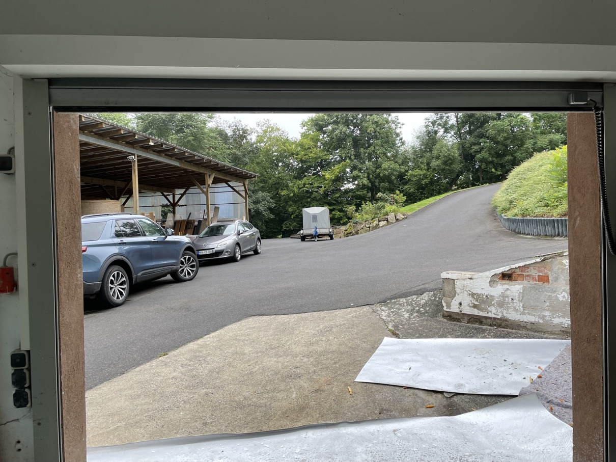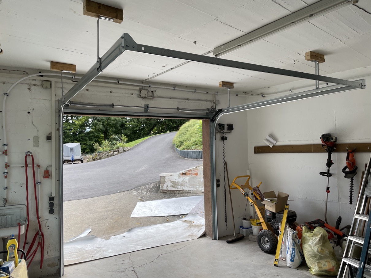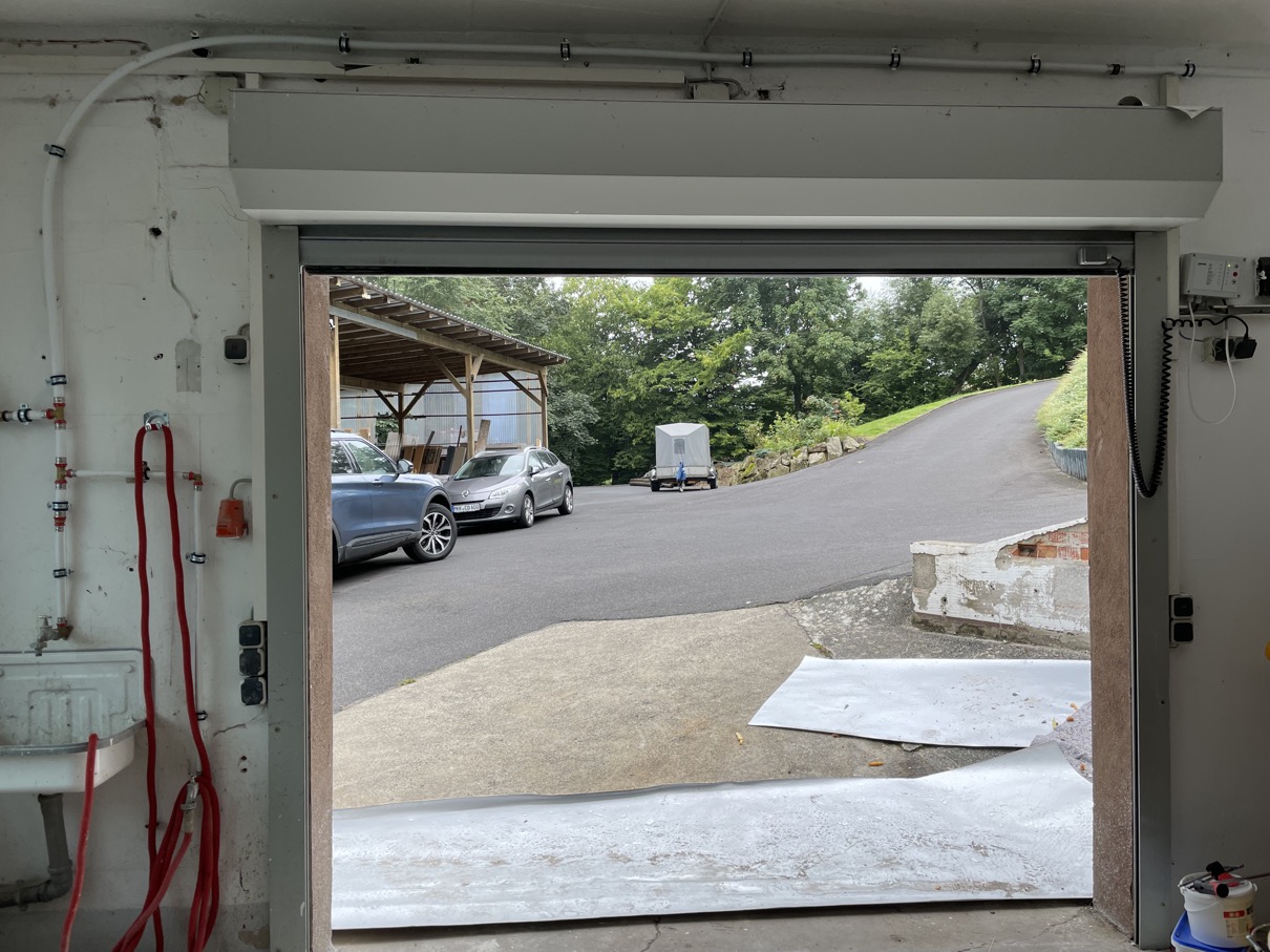 Auch wir waren nicht untätig - das alte "Garagen-Roll-Tor" war uns schon seit langem ein Dorn im Auge; entsprechend hatte ich vor drei Monaten ein neues Sektionaltor bestellt, das auch entsprechend der sechswöchigen Lieferzeit angeliefert wurde und bei mir noch so "rumlag". Da der Freitagnachmittag noch für andere, mehrheitlich Reparaturarbeiten, verbraucht wurde, blieb nur der Samstag bzw. Sonntag übrig:
