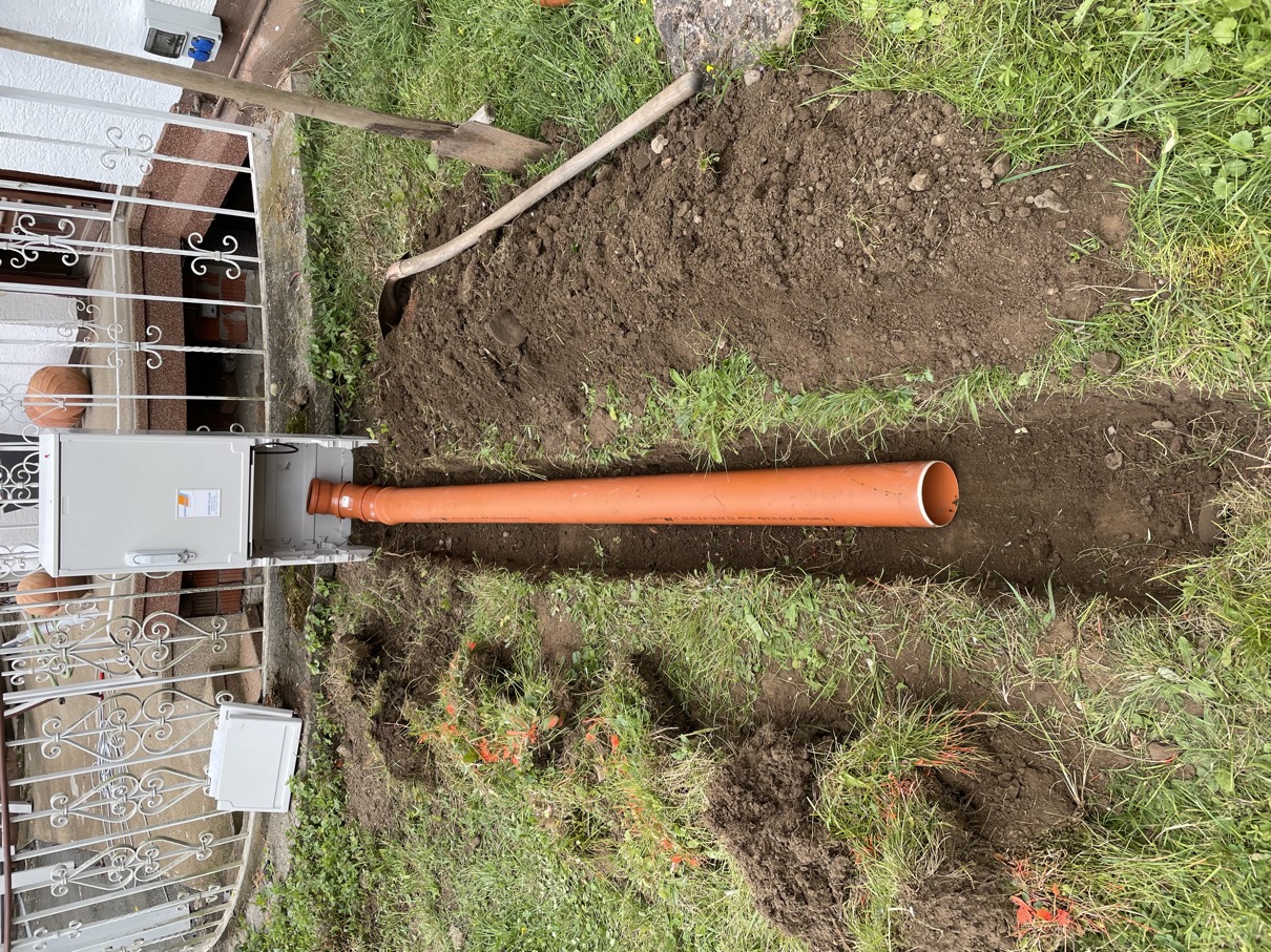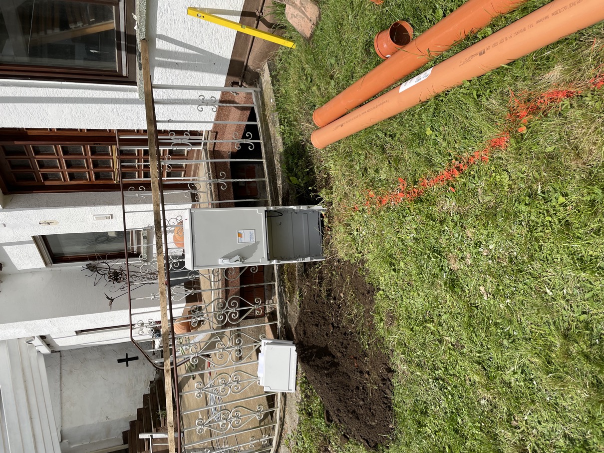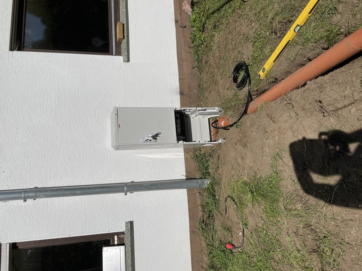 Der nächste "Kleinkram" dann --- eine separate Stromleitung (Erdkabel) mit eigener Absicherung in den Installationskasten verlegen .... auch erledigt --> jetzt kann (hoffentlich) die Technik in die Grube gelegt werden, so dass wir unsere wasserrechtliche Genehmigung auch erhalten.