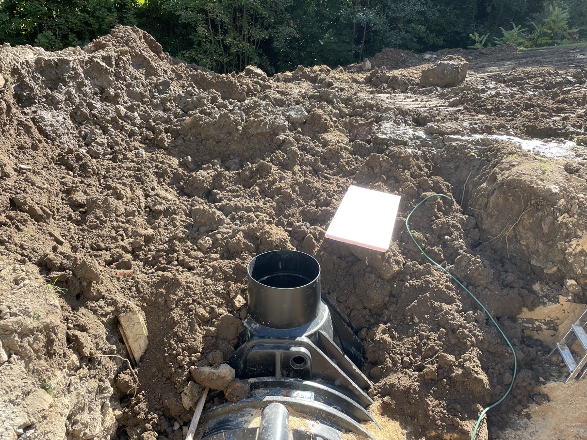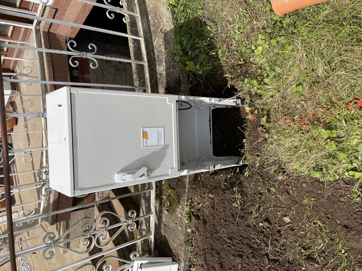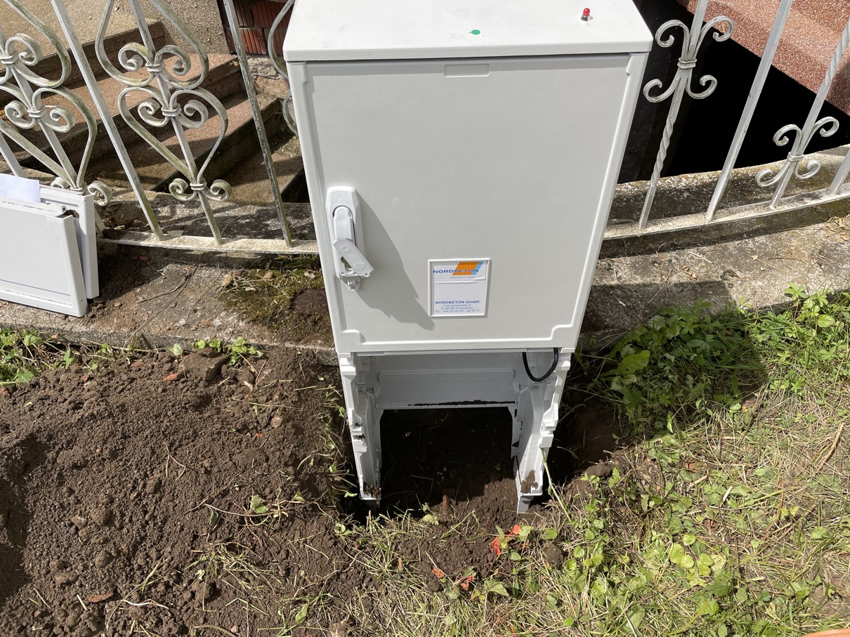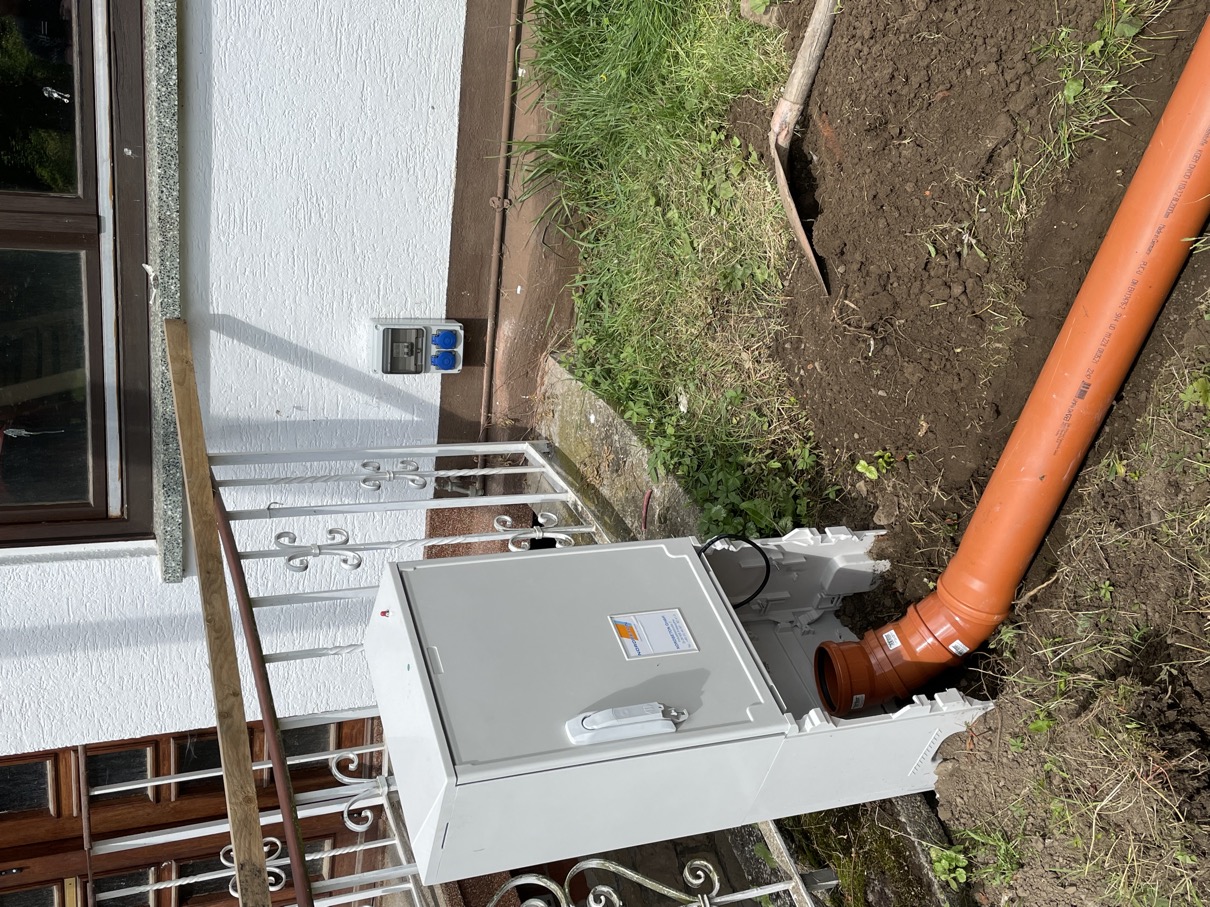Der nächste "Kleinkram" dann --- eine separate Stromleitung (Erdkabel) mit eigener Absicherung in den Installationskasten verlegen .... auch erledigt --> jetzt kann (hoffentlich) die Technik in die Grube gelegt werden, so dass wir unsere wasserrechtliche Genehmigung auch erhalten.