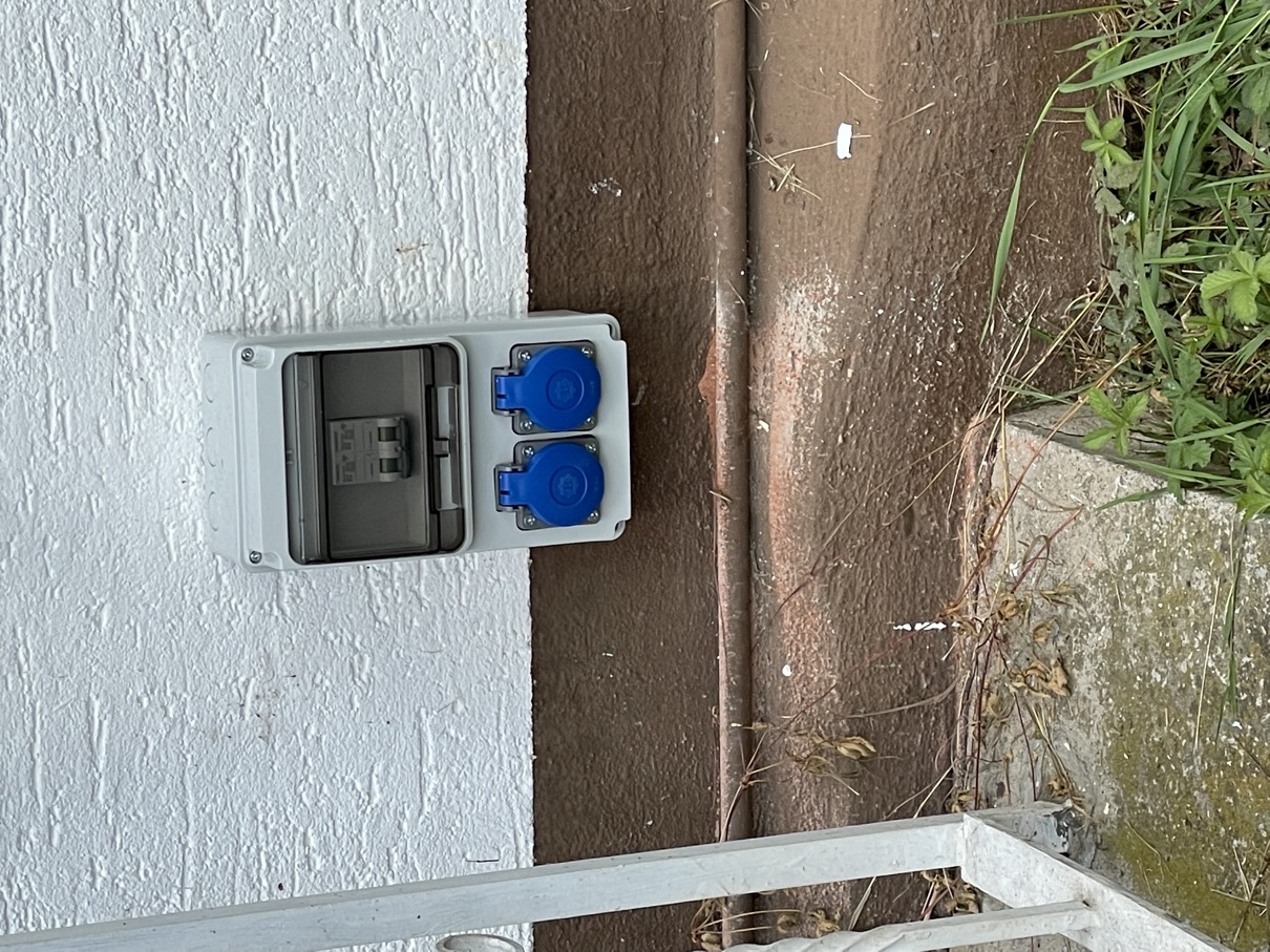Ein Thema war, dass in den Installationsschrank für die Klein-Klär-Anlage (KKA) "plötzlich" gefordert wurde, ein eigenes festes Strom-Anschlusskabel zu verlegen mit eigener Absicherung. Glücklicherweise hatte ich ja bereits einen Kleinverteiler mit zwei Steckdosen angebracht, so dass ich dort hinein ein Erdkabel verlegt habe mit eigenem Sicherungsautomaten .... und dann fertig -> dauerte jedoch auch wieder 3 Stunden.