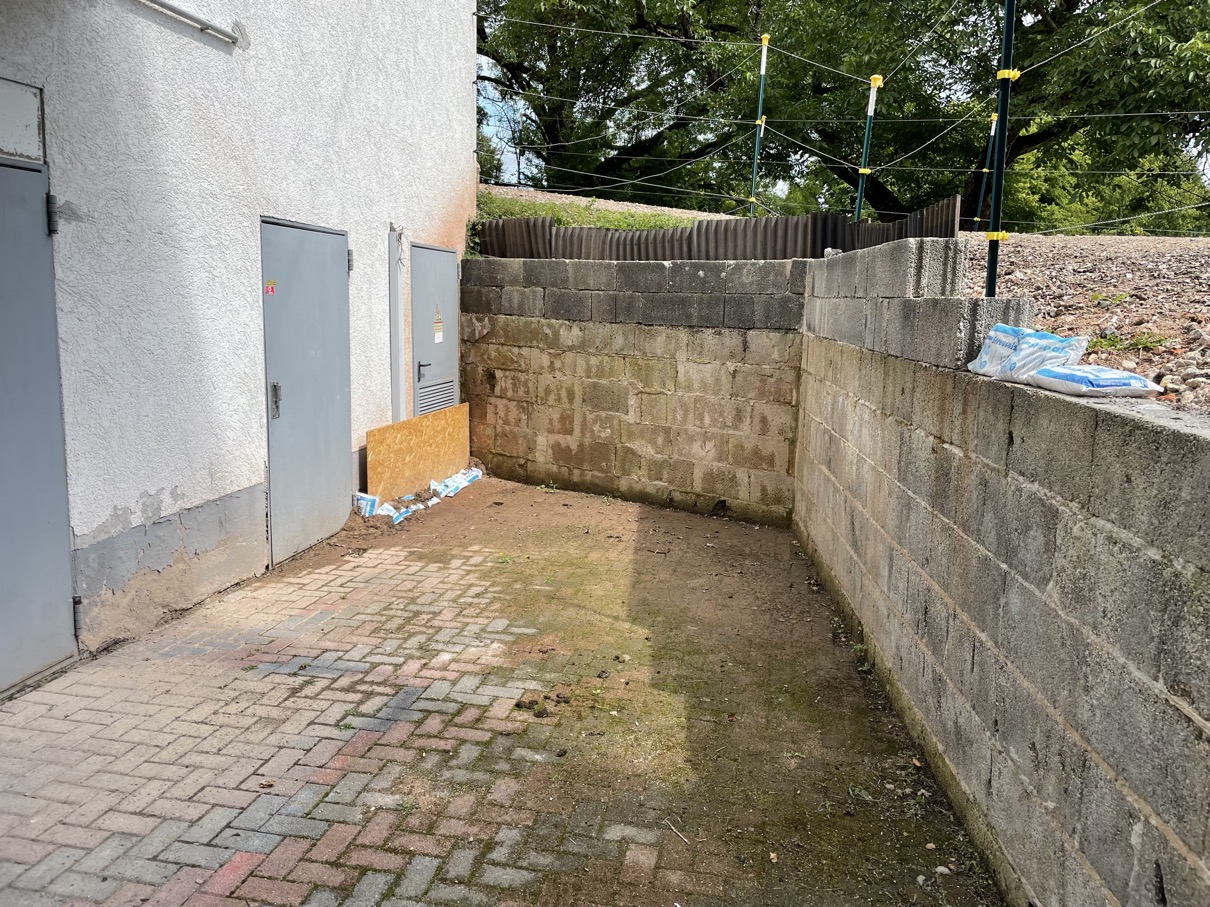 ... und wir haben wieder mit "Hochwasser" zu kämpfen - der Schwarzbach tritt wieder über die Ufer und leider wird auch zum wiederholten Male unser Zugang zum Transformator geflutet; bei der nächsten Gelegenheit wird die Mauer nochmals erhöht -> hoffentlich nutzt das dann etwas; Mauer auf der rechten Seite um zwei Reihen erhöht und Drainageplatten dahinter gesteckt 😩.