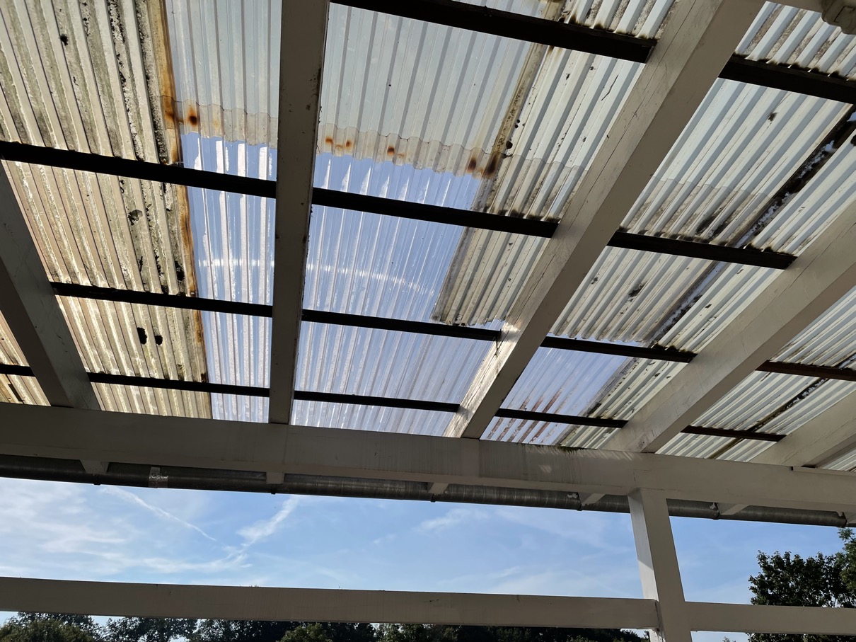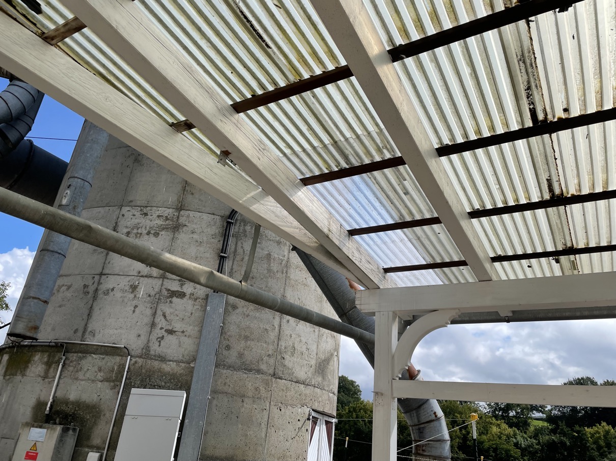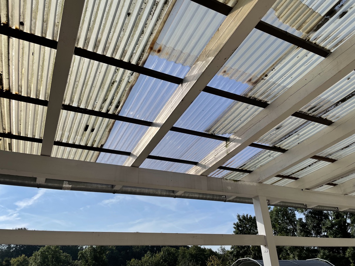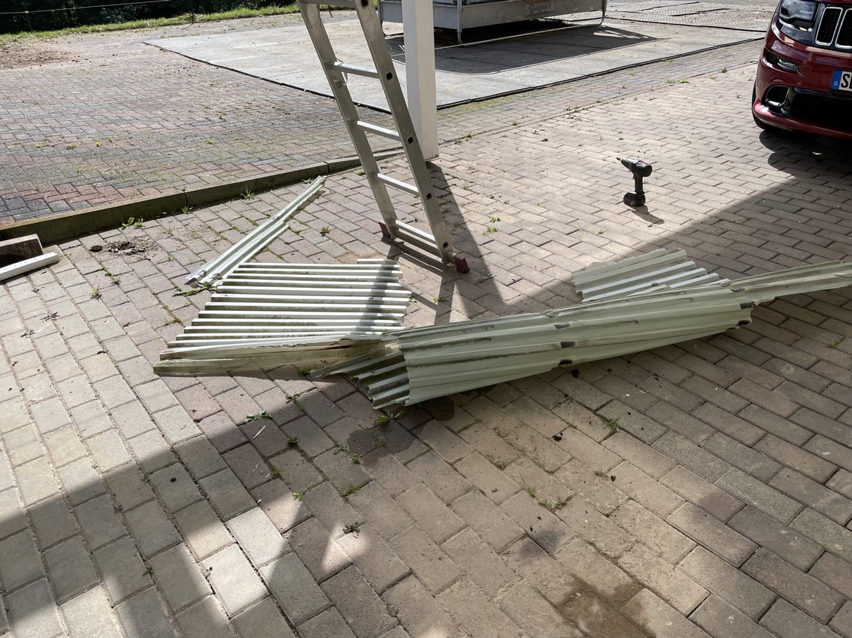 Seit Monaten habe ich diese Arbeit vor mir hergeschoben, da die Wellplatten nicht begehbar sind und ich nicht so richtig wußte, wie ich die zerborstenen Teile heraus und neue Platten hinein bekommen würde.